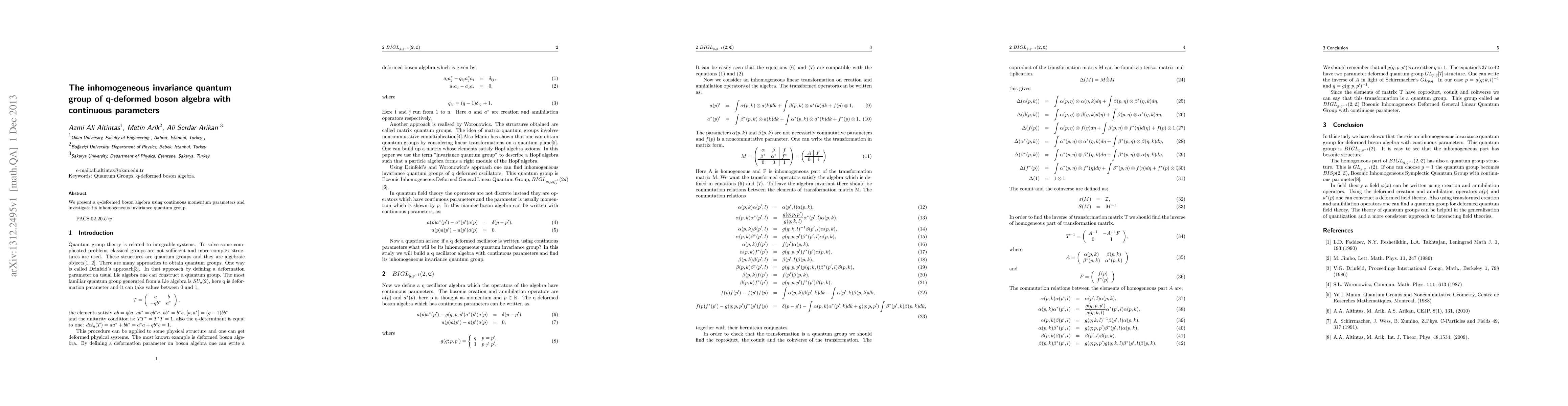 Summary: This paper introduces a q-deformed boson algebra with continuous momentum parameters and explores its associated inhomogeneous invariance quantum group, providing insights into its structural properties.
