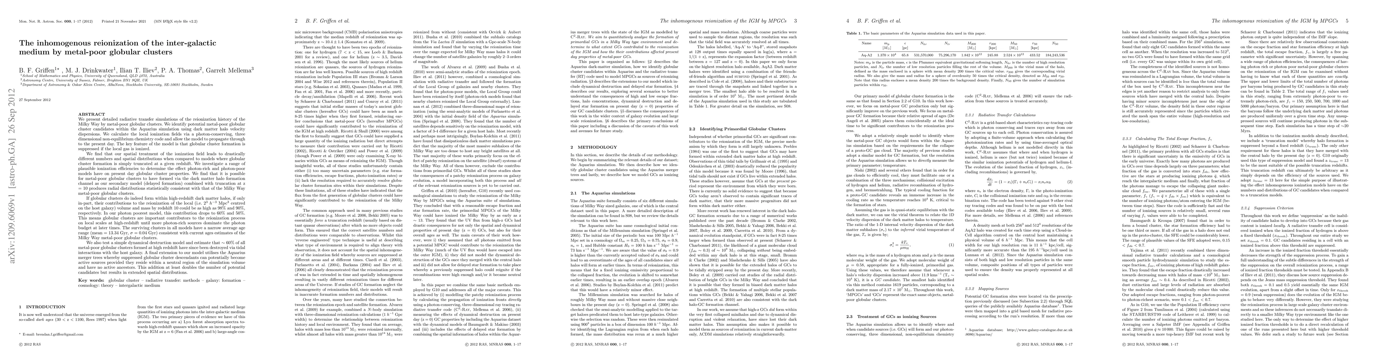 This paper explores the reionization of the Milky Way's intergalactic medium by metal-poor globular clusters through detailed simulations, finding significant contributions to reionization from clusters formed in high-redshift dark matter halos, with ~60% of these clusters destroyed by tidal interactions.