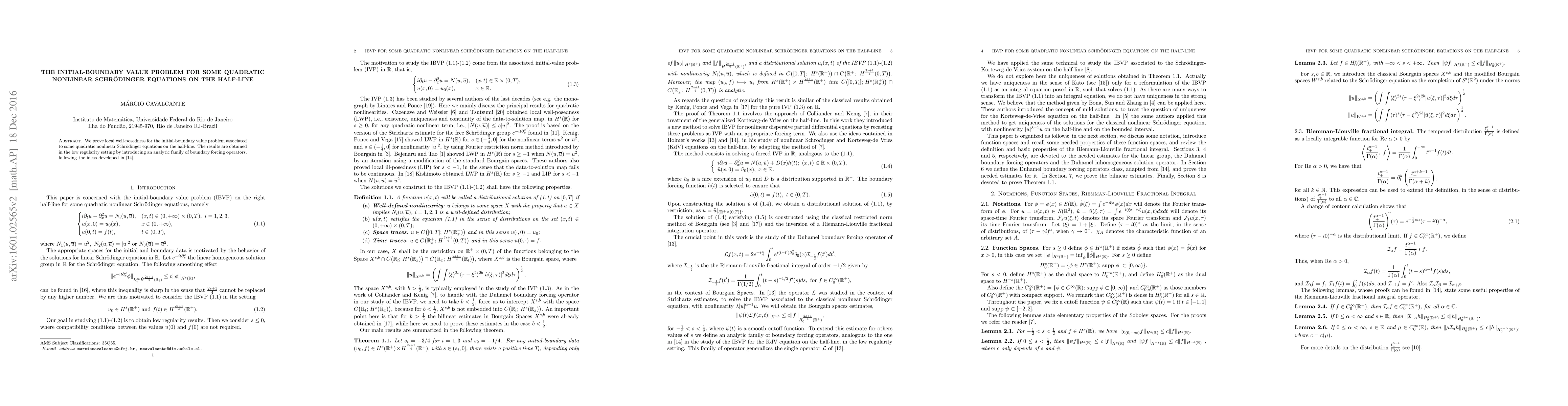 Summary: This paper proves local well-posedness for quadratic nonlinear Schrödinger equations on the half-line, addressing the initial-boundary value problem in a low regularity setting using analytic boundary forcing operators inspired by Colliander, Kenig, and Holmer's methods.