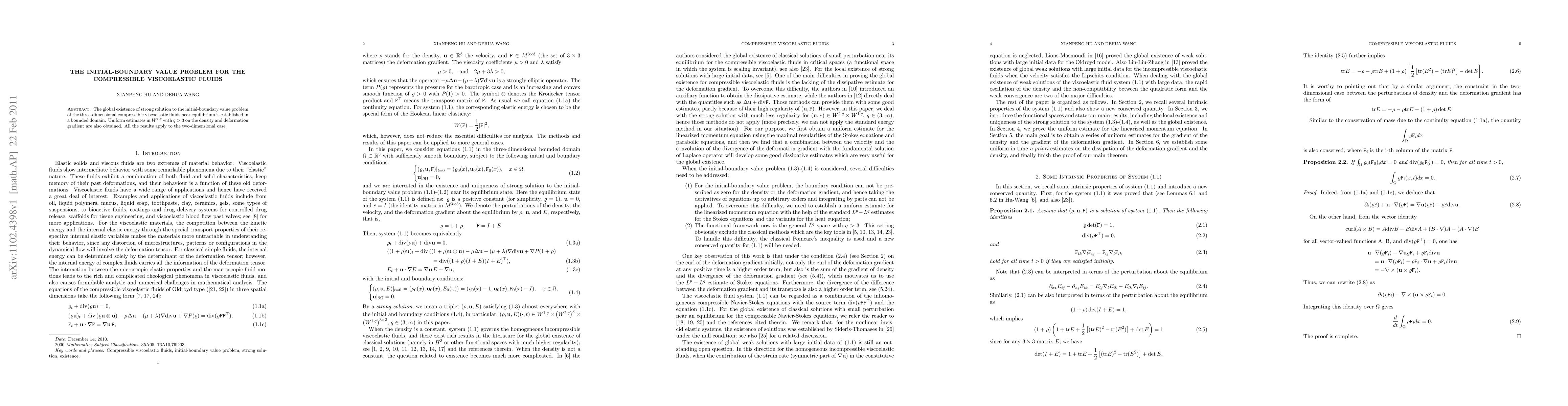 The global existence of strong solution to the initial-boundary value problem of the three-dimensional compressible viscoelastic fluids near equilibrium is established in a bounded domain. Uniform estimates in $W^{1,q}$ with $q>3$ on the density and deformation gradient are also obtained. All the results apply to the two-dimensional case.