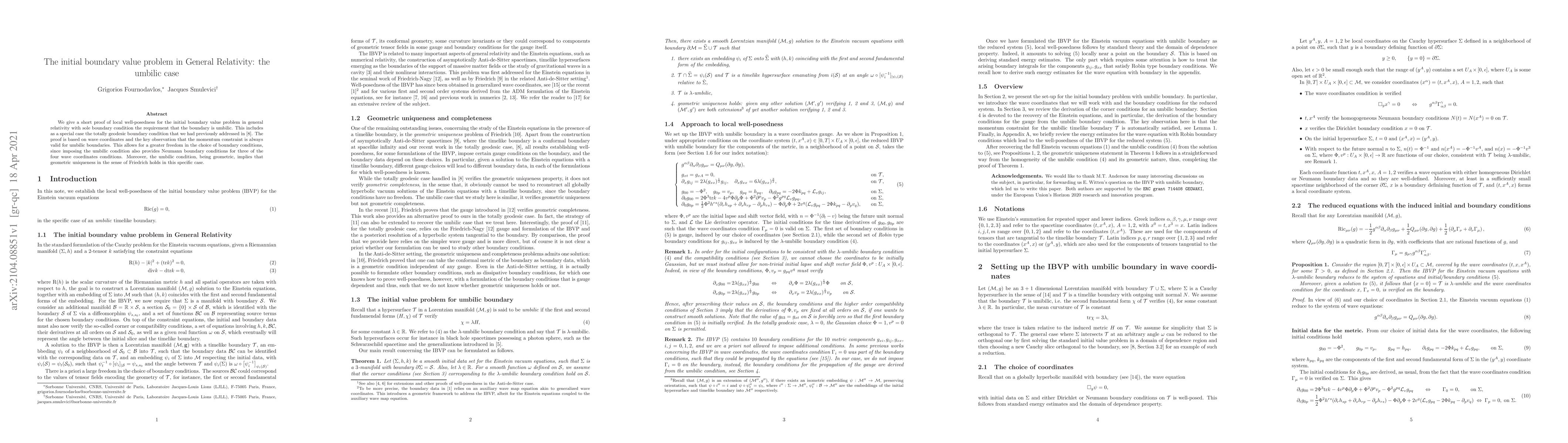 The paper provides a short proof of local well-posedness for the initial boundary value problem in general relativity, using wave coordinates and the key observation that the momentum constraint is always valid for umbilic boundaries.