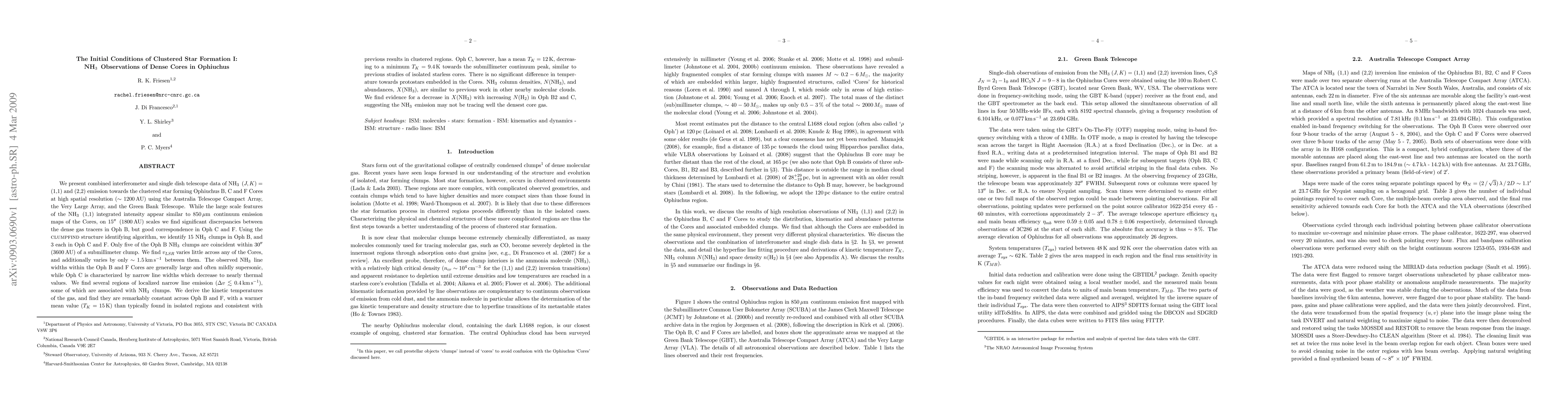 We present combined interferometer and single dish telescope data of NH3 (J,K) = (1,1) and (2,2) emission towards the clustered star forming Ophiuchus B, C and F Cores at high spatial resolution (~1200 AU) using the Australia Telescope Compact Array, the Very Large Array, and the Green Bank Telescope. While the large scale features of the NH3 (1,1) integrated intensity appear similar to 850 micron continuum emission maps of the Cores, on 15" (1800 AU) scales we find significant discrepancies between the dense gas tracers in Oph B, but good correspondence in Oph C and F. Using the Clumpfind structure identifying algorithm, we identify 15 NH3 clumps in Oph B, and 3 each in Oph C and F. Only five of the Oph B NH3 clumps are coincident within 30" (3600 AU) of a submillimeter clump. We find v_LSR varies little across any of the Cores, and additionally varies by only ~1.5 km/s between them. The observed NH3 line widths within the Oph B and F Cores are generally large and often mildly supersonic, while Oph C is characterized by narrow line widths which decrease to nearly thermal values. We find several regions of localized narrow line emission (\Delta v < 0.4 km/s), some of which are associated with NH3 clumps. We derive the kinetic temperatures of the gas, and find they are remarkably constant across Oph B and F, with a warmer mean value (T_K = 15 K) than typically found in isolated regions and consistent with previous results in clustered regions. Oph C, however, has a mean T_K = 12 K, decreasing to a minimum T_K = 9.4 K towards the submillimeter continuum peak, similar to previous studies of isolated starless cores. There is no significant difference in temperature towards protostars embedded in the Cores. [Abridged]