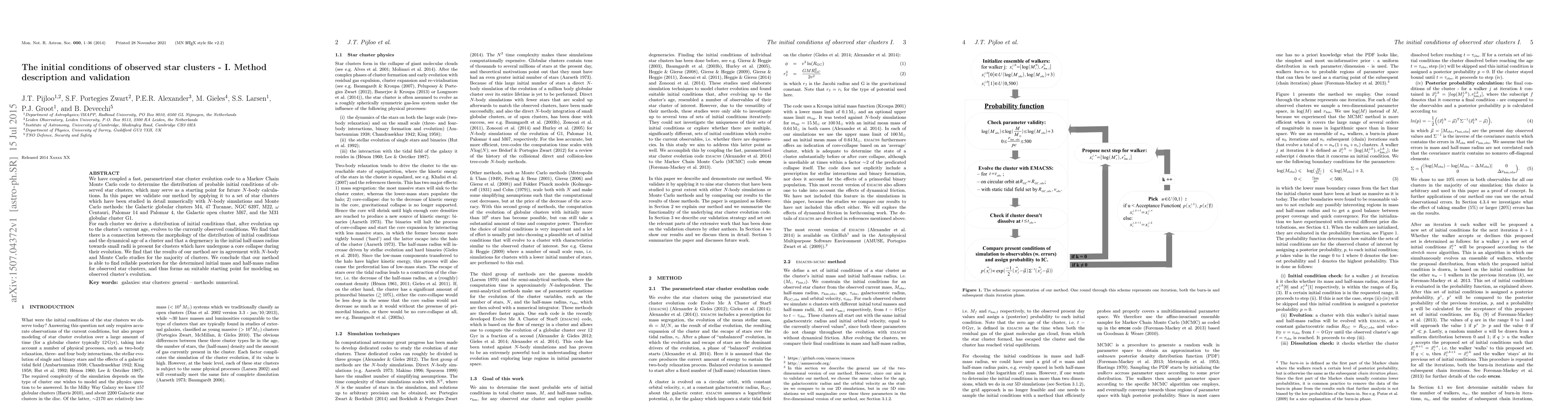 This paper describes a method combining a fast star cluster evolution code with a Markov Chain Monte Carlo technique to determine probable initial conditions of observed star clusters. The method is validated against detailed $N$-body simulations, showing agreement and revealing a connection between initial conditions' morphology and cluster dynamical age, especially for core-collapsed clusters.