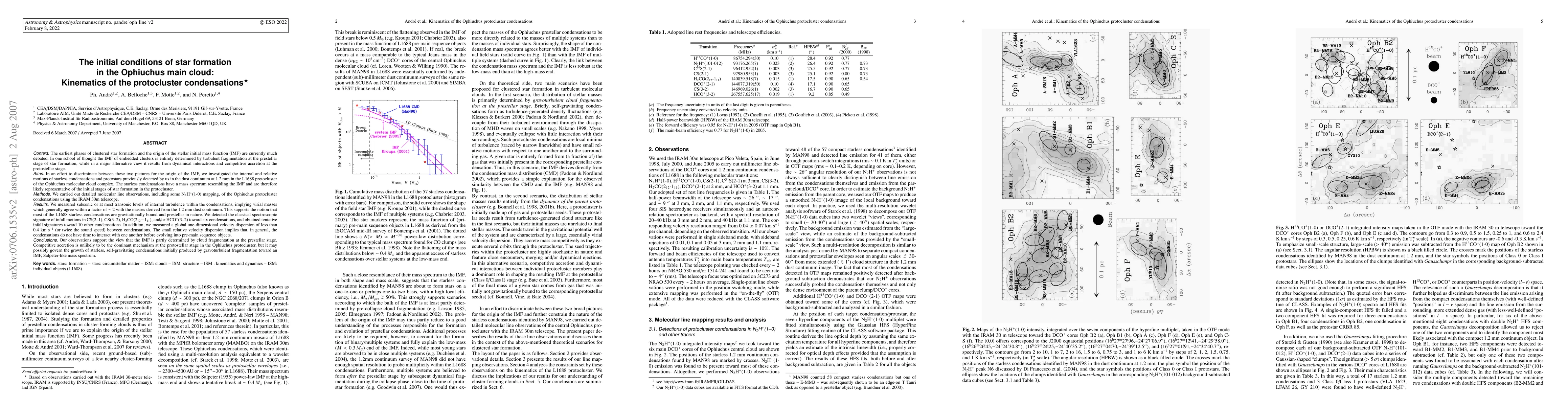 This paper investigates the kinematics of protocluster condensations in the Ophiuchus molecular cloud to understand the initial conditions of star formation and the origin of the stellar initial mass function. Observations reveal low internal turbulence and a small relative velocity dispersion, suggesting that cloud fragmentation at the prestellar stage largely determines the IMF.