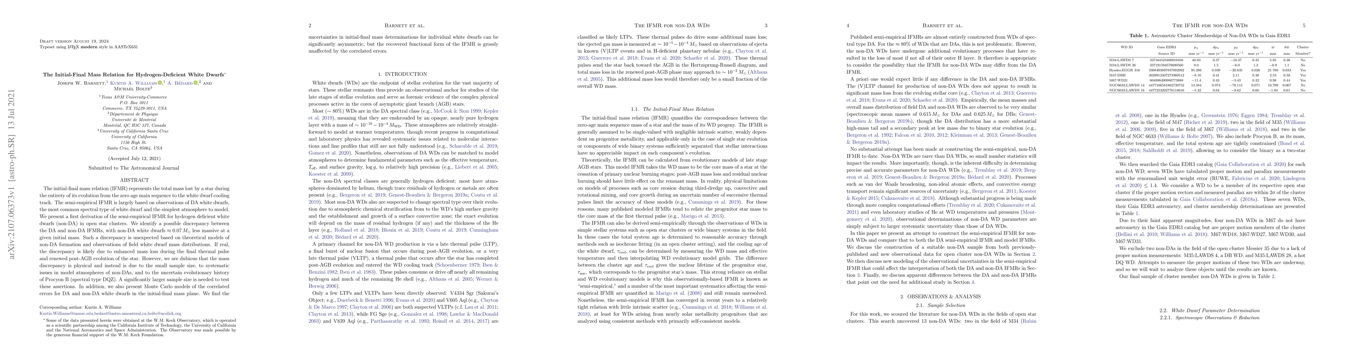 This paper derives the initial-final mass relation for hydrogen-deficient white dwarfs (non-DA), identifying a potential discrepancy with DA white dwarfs, suggesting non-DAs are less massive. The authors question the physical basis of this discrepancy, attributing it to sample size, model issues, and evolutionary uncertainties.