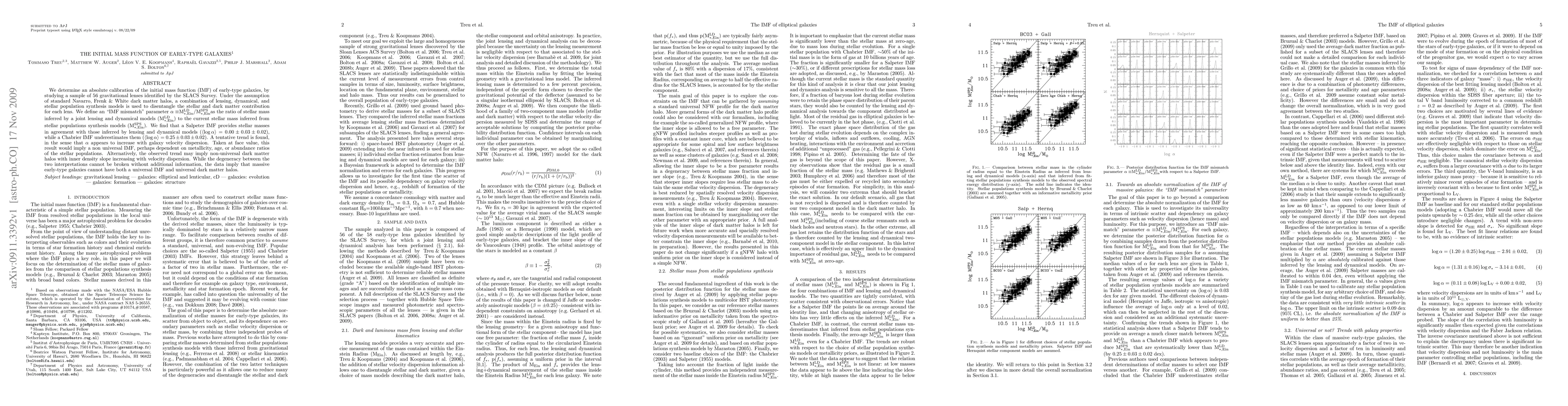 This work distinguishes itself by providing an absolute calibration of stellar masses, showing discrepancies between standard IMFs (Salpeter vs. Chabrier) for early-type galaxies, and suggesting potential variations in IMF or dark matter halo properties with galaxy velocity dispersion.