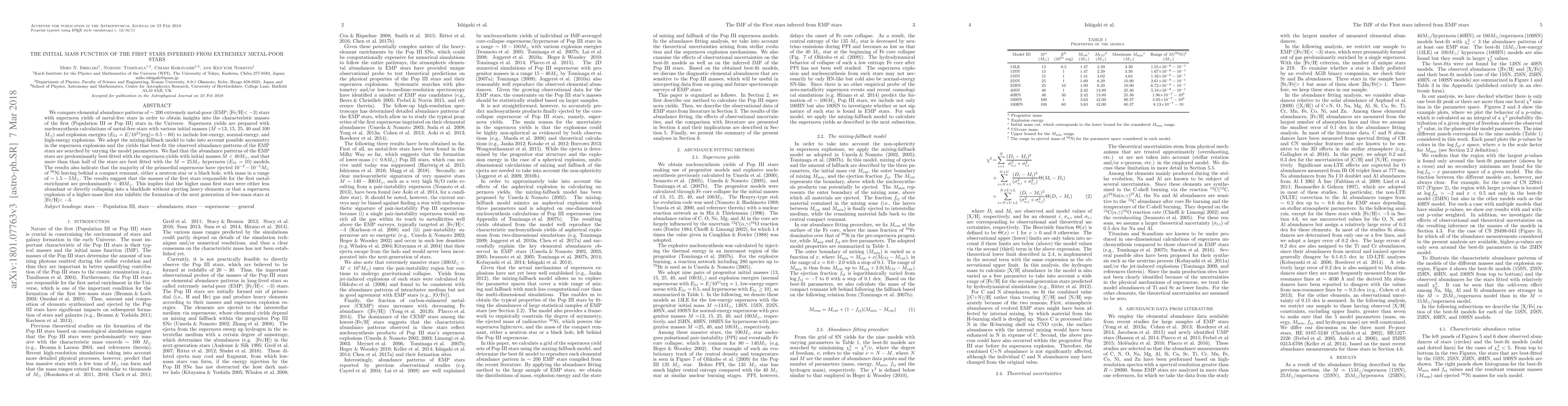 This study infers the initial mass function of the first stars by comparing elemental abundances in extremely metal-poor stars with supernova yields from various mass models. The results suggest that the first metal-enriching stars had masses predominantly less than 40 solar masses, with many fitting models of 25 solar masses.
