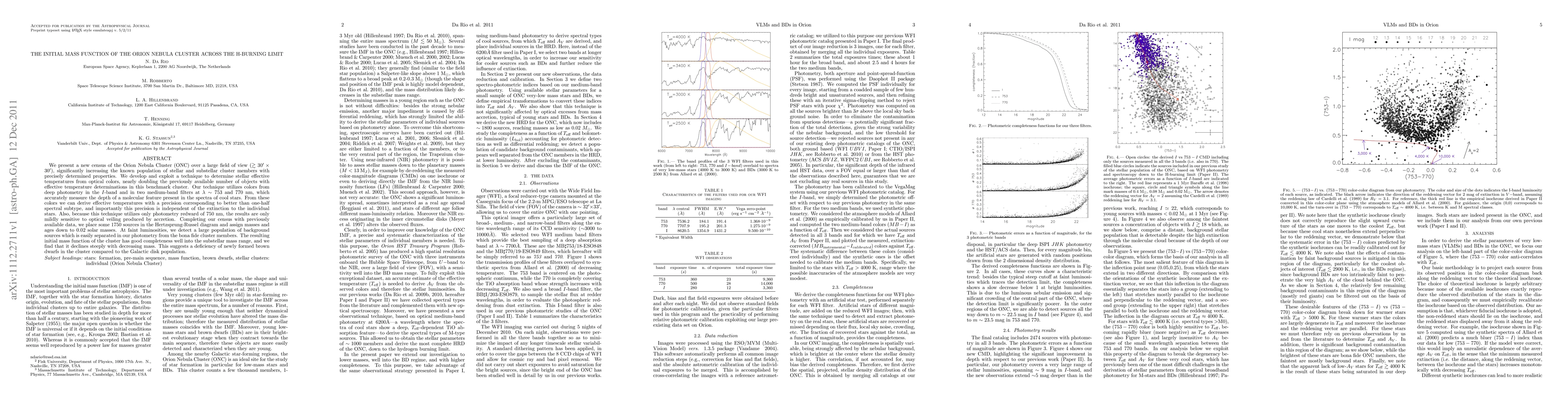 This paper presents an extensive census of the Orion Nebula Cluster, identifying over 1750 stellar and substellar members with precise mass and age determinations. The authors develop a new technique to derive effective temperatures from optical colors, significantly improving temperature measurements and enabling a detailed initial mass function analysis that shows a steep decline in the number of low-mass objects, indicating fewer brown dwarfs than in the Galactic disk.