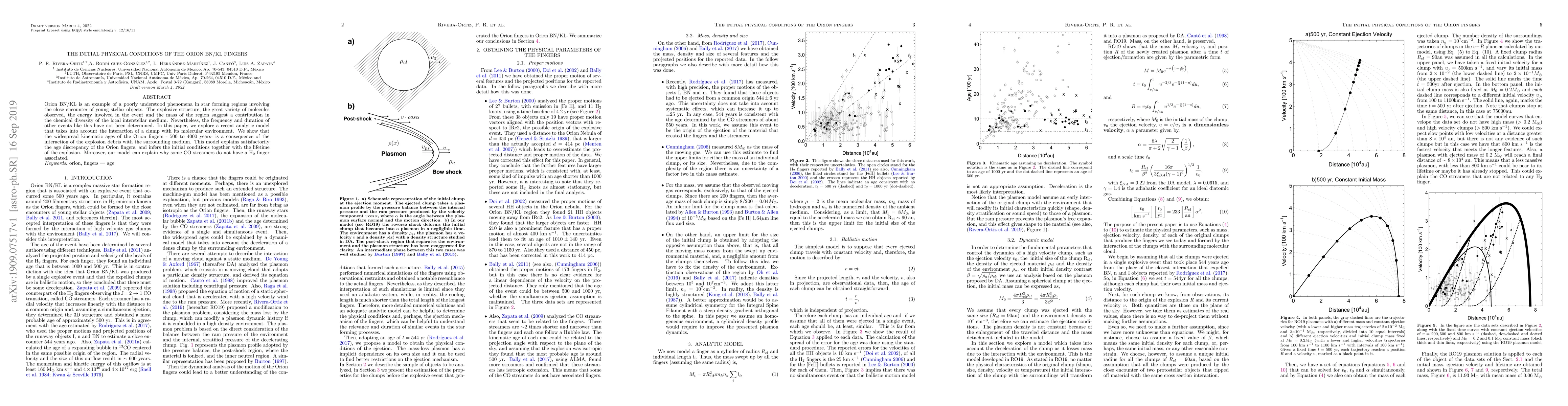 This paper investigates the initial physical conditions of Orion BN/KL's fingers, attributing their kinematic ages (500 to 4000 years) to the interaction of explosion debris with the surrounding medium. The study uses an analytic model to explain the age discrepancy and infers the initial conditions and lifetime of the explosion.