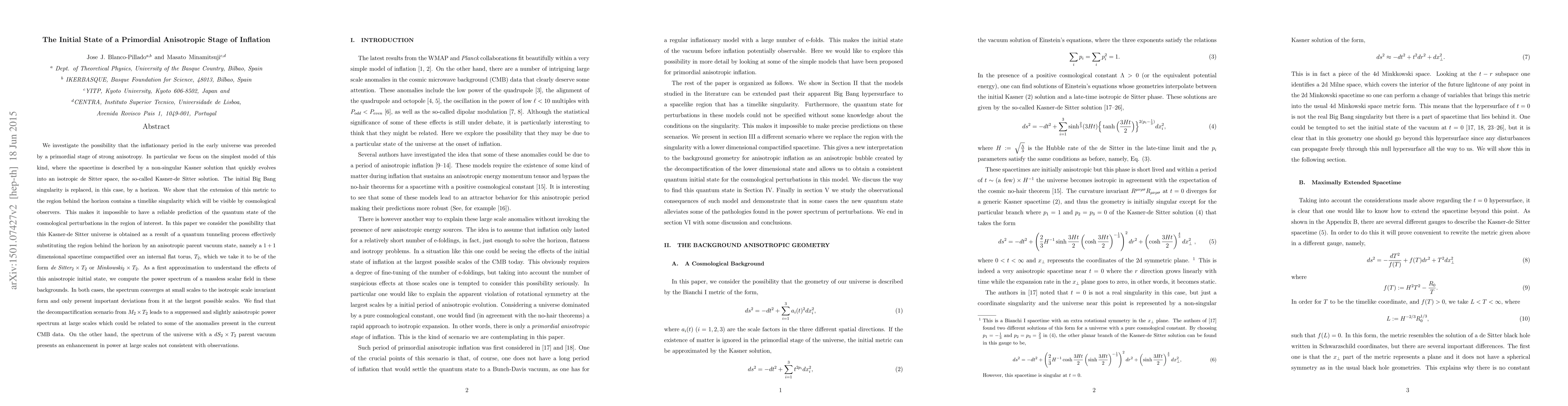 This research explores the idea of a primordial anisotropic stage before cosmic inflation, suggesting a Kasner-de Sitter solution replacing the Big Bang singularity with a horizon. A timelike singularity is found behind this horizon, obscuring cosmological perturbation predictions. The study proposes a quantum tunneling process creating this anisotropic parent vacuum, approximated by a 1+1D spacetime compactified over a torus T2, either dS2×T2 or M2×T2. Analyzing scalar field power spectra in these backgrounds, significant deviations from the standard isotropic spectrum are observed only at the largest scales. The decompactification scenario from M2×T2 results in a suppressed, slightly anisotropic power spectrum, potentially linked to CMB anomalies, while the dS2×T2 scenario presents an inconsistent large-scale power spectrum enhancement.