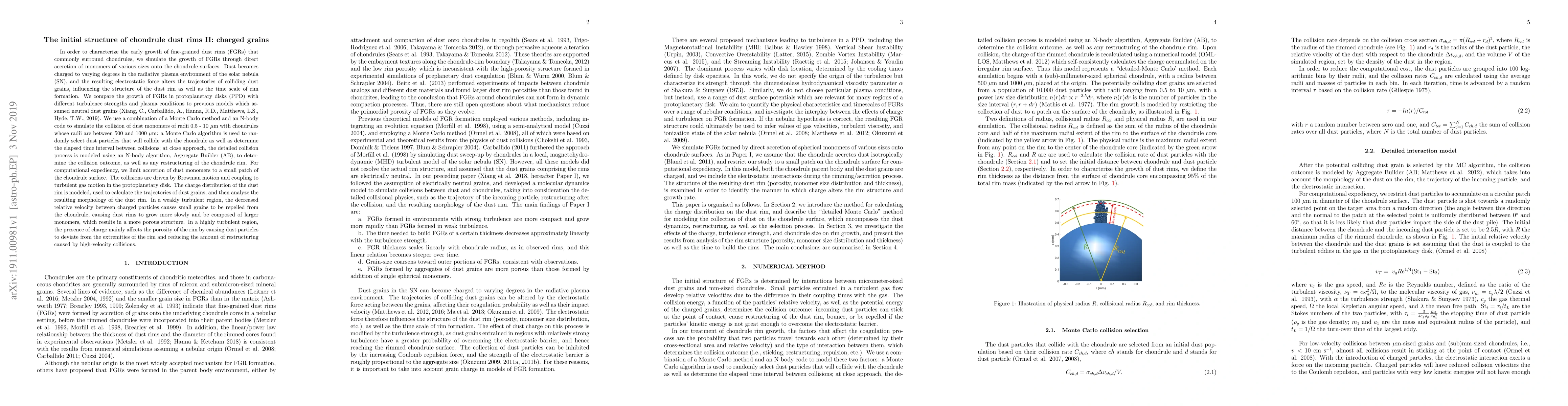 Researchers simulated dust rim growth around chondrules in protoplanetary disks with varying turbulence strengths and plasma conditions, finding that charged grains influenced the rim's structure and formation time scale.