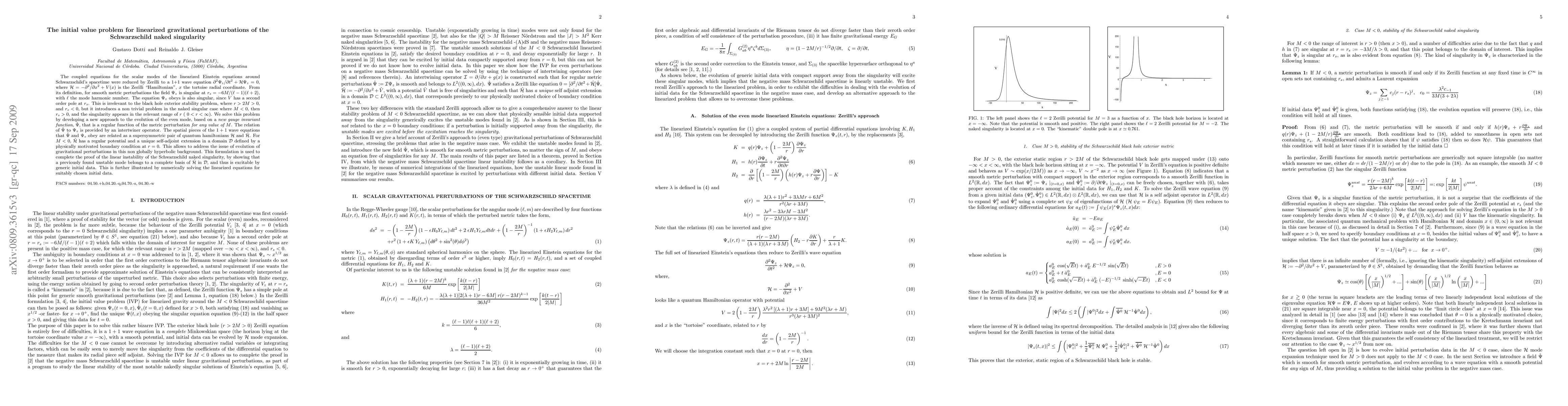 The coupled equations for the scalar modes of the linearized Einstein equations around Schwarzschild's spacetime were reduced by Zerilli to a 1+1 wave equation with a potential $V$, on a field $\Psi_z$. For smooth metric perturbations $\Psi_z$ is singular at $r_s=-6M/(\ell-1)(\ell+2)$, $\ell$ the mode harmonic number, and $V$ has a second order pole at $r_s$. This is irrelevant to the black hole exterior stability problem, where $r>2M>0$, and $r_s <0$, but it introduces a non trivial problem in the naked singular case where $M<0$, then $r_s>0$, and the singularity appears in the relevant range of $r$. We solve this problem by developing a new approach to the evolution of the even mode, based on a {\em new gauge invariant function}, $\hat \Psi$ -related to $\Psi_z$ by an intertwiner operator- that is a regular function of the metric perturbation {\em for any value of $M$}. This allows to address the issue of evolution of gravitational perturbations in this non globally hyperbolic background, and to complete the proof of the linear instability of the Schwarzschild naked singularity, by showing that a previously found unstable mode is excitable by generic initial data. This is further illustrated by numerically solving the linearized equations for suitably chosen initial data.
