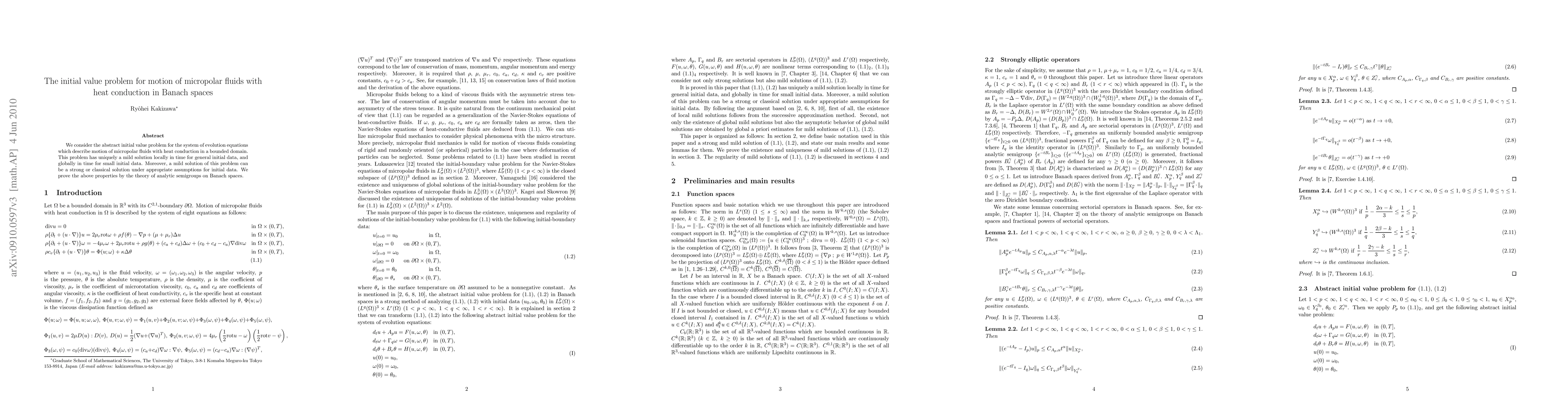 This paper investigates the initial value problem for the evolution equations governing the motion of micropolar fluids with heat conduction, proving local and global existence of mild solutions, and establishing conditions under which these solutions become strong or classical, using the theory of analytic semigroups on Banach spaces.