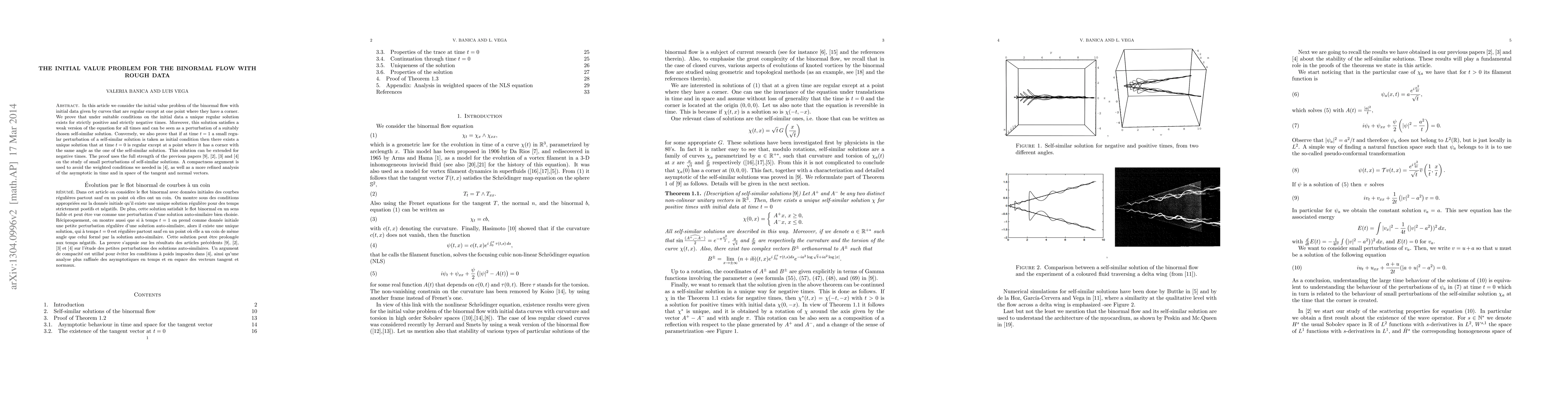 In this article we consider the initial value problem of the binormal flow with initial data given by curves that are regular except at one point where they have a corner. We prove that under suitable conditions on the initial data a unique regular solution exists for strictly positive and strictly negative times. Moreover, this solution satisfies a weak version of the equation for all times and can be seen as a perturbation of a suitably chosen self-similar solution. Conversely, we also prove that if at time t = 1 a small regular perturbation of a self-similar solution is taken as initial condition then there exists a unique solution that at time t = 0 is regular except at a point where it has a corner with the same angle as the one of the self-similar solution. This solution can be extended for negative times. The proof uses the full strength of the previous papers [9], [2], [3] and [4] on the study of small perturbations of self-similar solutions. A compactness argument is used to avoid the weighted conditions we needed in [4], as well as a more refined analysis of the asymptotic in time and in space of the tangent and normal vectors.