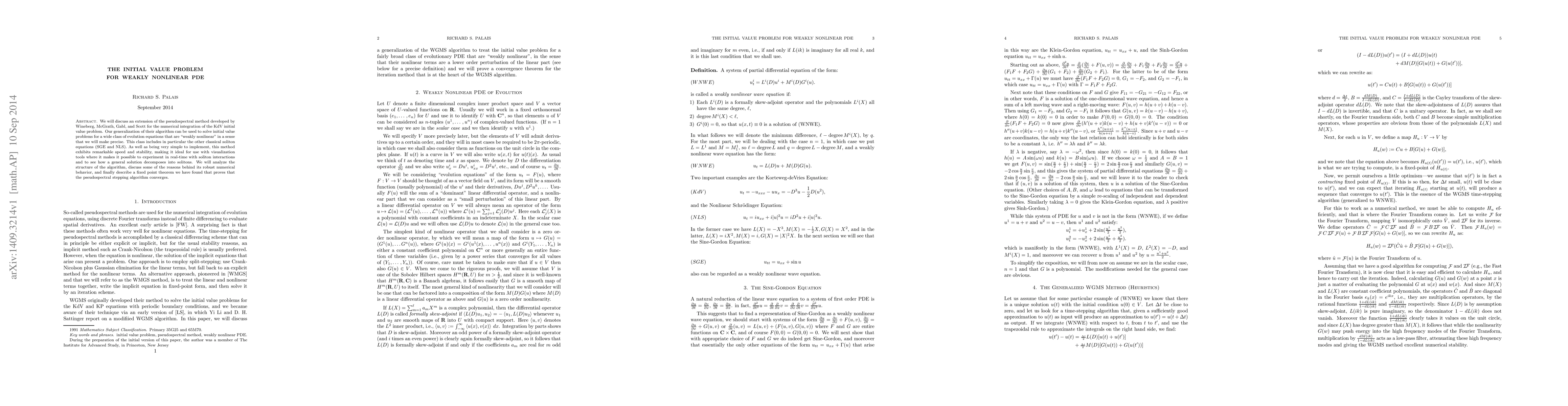 We will discuss an extension of the pseudospectral method developed by Wineberg, McGrath, Gabl, and Scott for the numerical integration of the KdV initial value problem. Our generalization of their algorithm can be used to solve initial value problems for a wide class of evolution equations that are "weakly nonlinear" in a sense that we will make precise. This class includes in particular the other classical soliton equations (SGE and NLS). As well as being very simple to implement, this method exhibits remarkable speed and stability, making it ideal for use with visualization tools where it makes it possible to experiment in real-time with soliton interactions and to see how a general solution decomposes into solitons. We will analyze the structure of the algorithm, discuss some of the reasons behind its robust numerical behavior, and finally describe a fixed point theorem we have found that proves that the pseudospectral stepping algorithm converges.