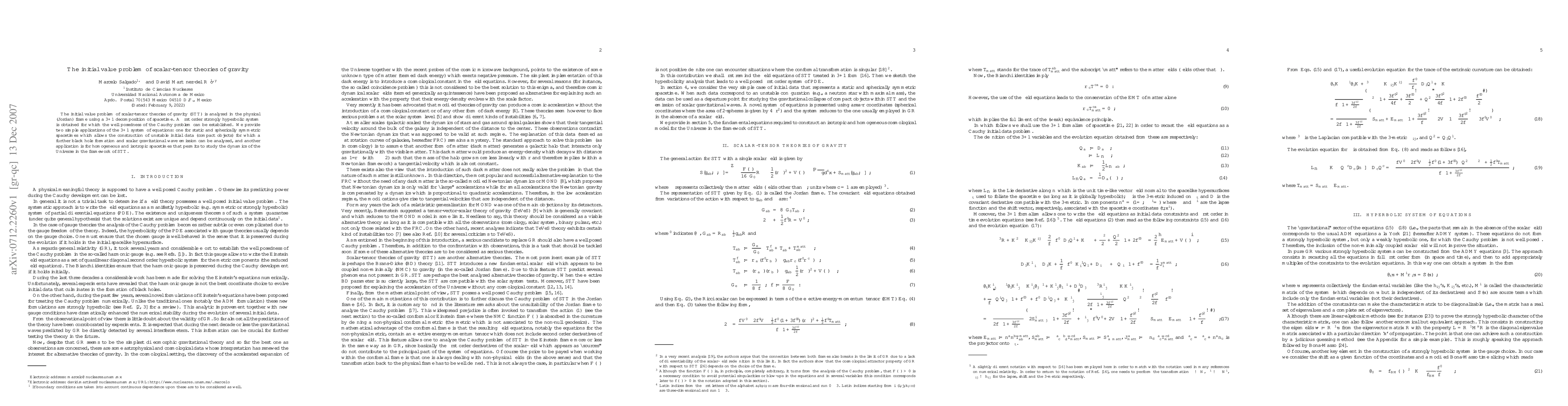 This paper analyzes the initial value problem for scalar-tensor theories of gravity (STT) in the Jordan frame, establishing a well-posed Cauchy problem through a 3+1 decomposition. It applies the derived system to study static, spherically symmetric spacetimes and homogeneous, isotropic universes within STT.