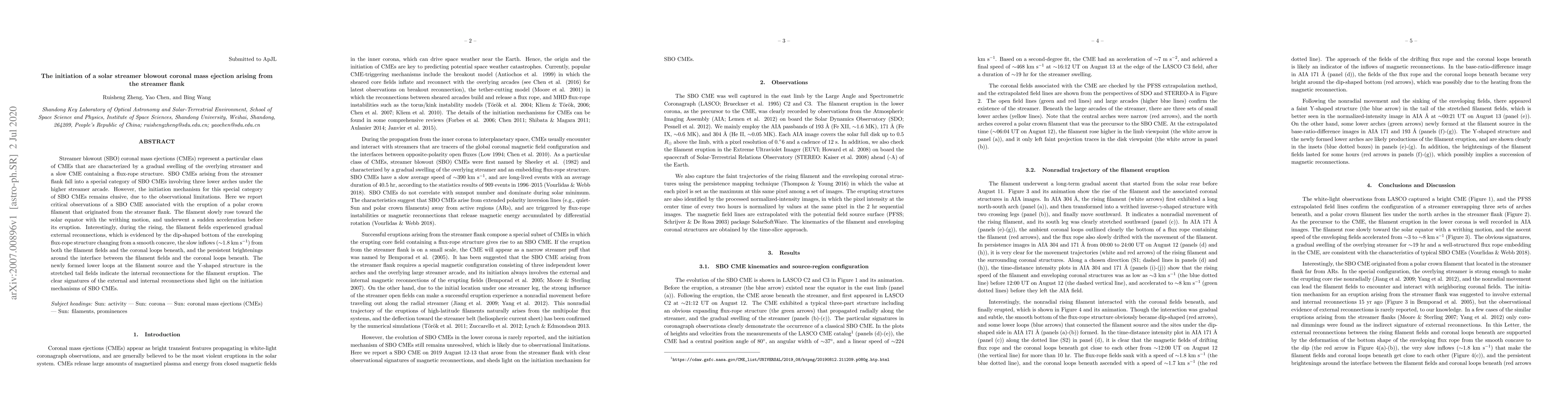 The paper presents detailed observations and analysis of a solar eruption, identifying key signatures of both external and internal magnetic reconnections during the initiation of a SBO CME from the streamer flank.