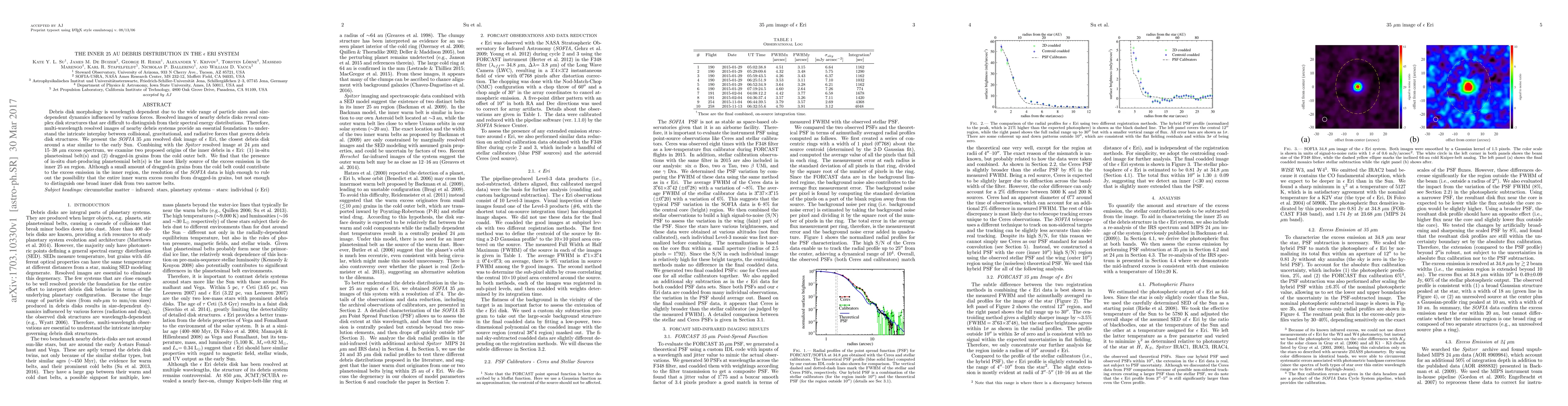 Debris disk morphology is wavelength dependent due to the wide range of particle sizes and size-dependent dynamics influenced by various forces. Resolved images of nearby debris disks reveal complex disk structures that are difficult to distinguish from their spectral energy distributions. Therefore, multi-wavelength resolved images of nearby debris systems provide an essential foundation to understand the intricate interplay between collisional, gravitational, and radiative forces that govern debris disk structures. We present the SOFIA 35 um resolved disk image of epsilon Eri, the closest debris disk around a star similar to the early Sun. Combining with the Spitzer resolved image at 24 um and 15-38 um excess spectrum, we examine two proposed origins of the inner debris in epsilon Eri: (1) in-situ planetesimal belt(s) and (2) dragged-in grains from the cold outer belt. We find that the presence of in-situ dust-producing planetesmial belt(s) is the most likely source of the excess emission in the inner 25 au region. Although a small amount of dragged-in grains from the cold belt could contribute to the excess emission in the inner region, the resolution of the SOFIA data is high enough to rule out the possibility that the entire inner warm excess results from dragged-in grains, but not enough to distinguish one broad inner disk from two narrow belts.