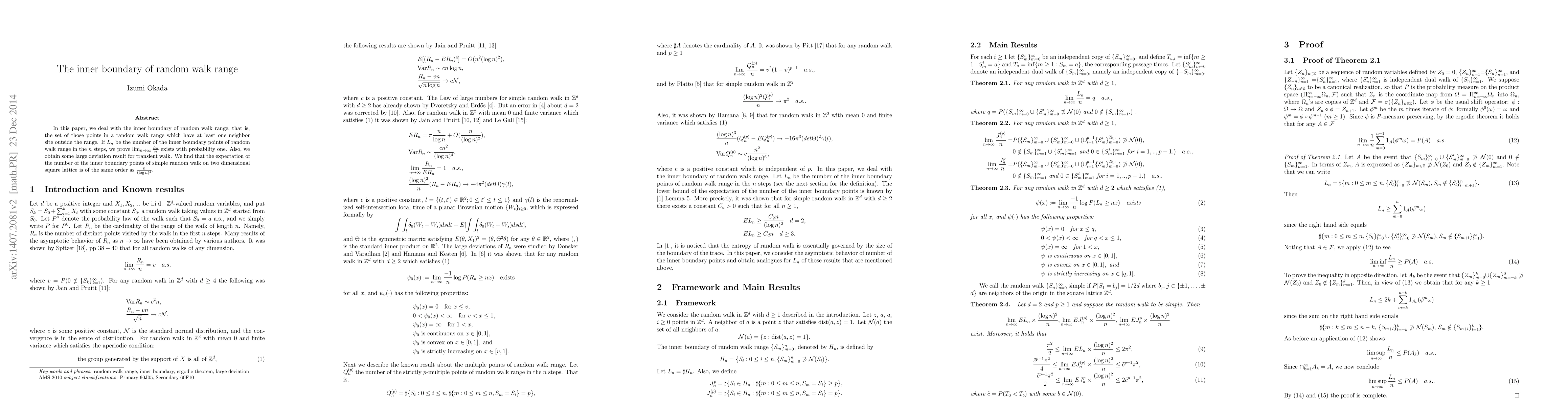 In this paper, we deal with the inner boundary of random walk range, that is, the set of those points in a random walk range which have at least one neighbor site outside the range. If $L_n$ be the number of the inner boundary points of random walk range in the $n$ steps, we prove $\lim_{n\to \infty}\frac{L_n}{n}$ exists with probability one. Also, we obtain some large deviation result for transient walk. We find that the expectation of the number of the inner boundary points of simple random walk on two dimensionnal square lattice is of the same order as $\frac{n}{(\log n)^2}$.