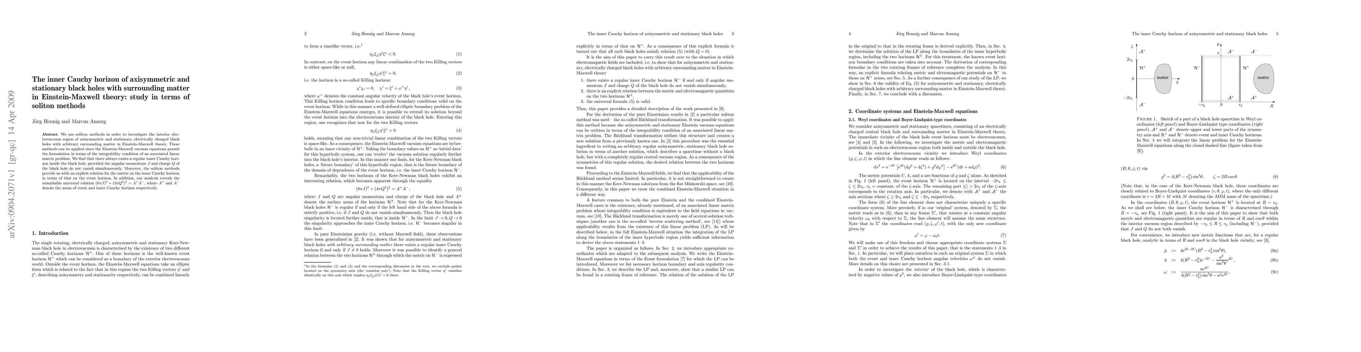This paper employs soliton methods to study the interior of axisymmetric and stationary, electrically charged black holes in Einstein-Maxwell theory, revealing a regular inner Cauchy horizon when angular momentum and charge do not simultaneously vanish. It also uncovers a universal relation between the areas of the event and inner Cauchy horizons.
