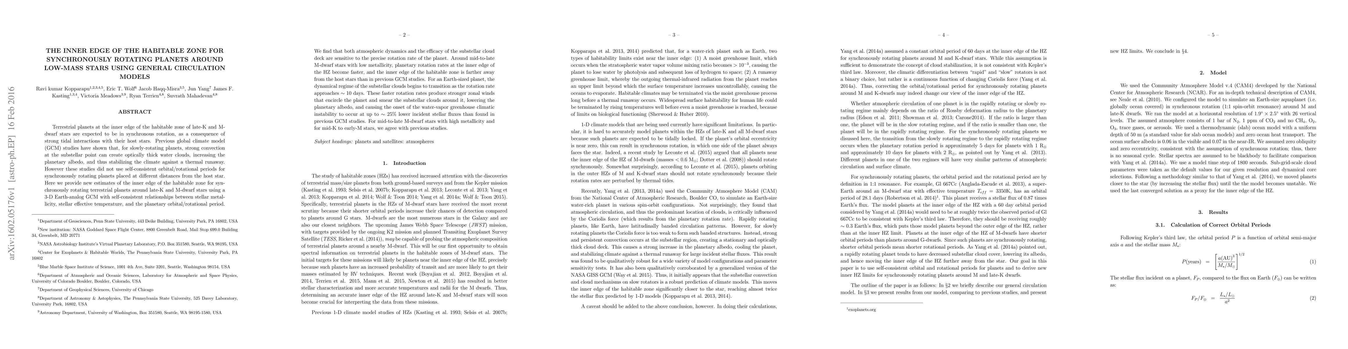 This research refines estimates of the inner edge of the habitable zone for synchronously rotating terrestrial planets around late-K and M-dwarf stars using advanced GCM models. It finds that faster rotation rates, common for planets near these stars, can shift the habitable zone outward and alter cloud dynamics, leading to a more complex climate stability than previously understood.