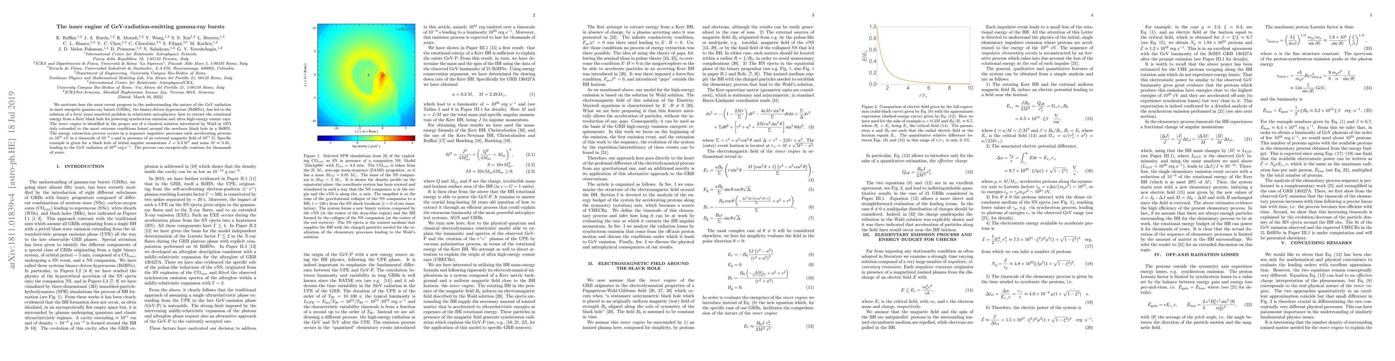 We motivate how the most recent progress in the understanding the nature of the GeV radiation in most energetic gamma-ray bursts (GRBs), the binary-driven hypernovae (BdHNe), has led to the solution of a forty years unsolved problem in relativistic astrophysics: how to extract the rotational energy from a Kerr black hole for powering synchrotron emission and ultra high-energy cosmic rays. The "inner engine" is identified in the proper use of a classical solution introduced by Wald in 1974 duly extended to the most extreme conditions found around the newborn black hole in a BdHN. The energy extraction process occurs in a sequence impulsive processes each accelerating protons to $10^{21}$ eV in a timescale of $10^{-6}$ s and in presence of an external magnetic field of $10^{14}$ G. Specific example is given for a black hole of initial angular momentum $J=0.3\,M^2$ and mass $M\approx 3\,M_\odot$ leading to the GeV radiation of $10^{49}$ erg$\cdot$s$^{-1}$. The process can energetically continue for thousands of years.