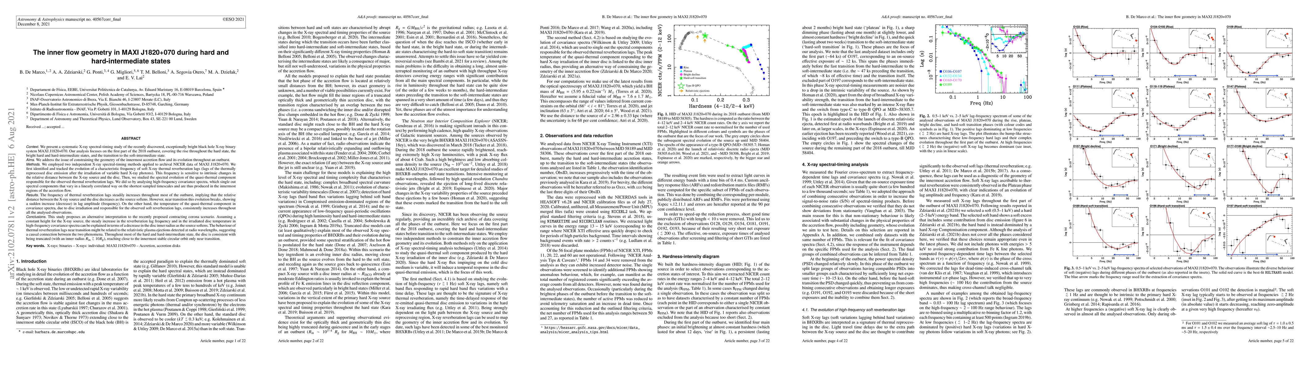 This study uses NICER data to analyze the X-ray spectral-timing of MAXI J1820+070, revealing that the inner accretion flow geometry evolves with the outburst, showing a truncated disc during hard and hard-intermediate states, and suggesting a causal link between thermal reverberation lags and relativistic plasma ejections.