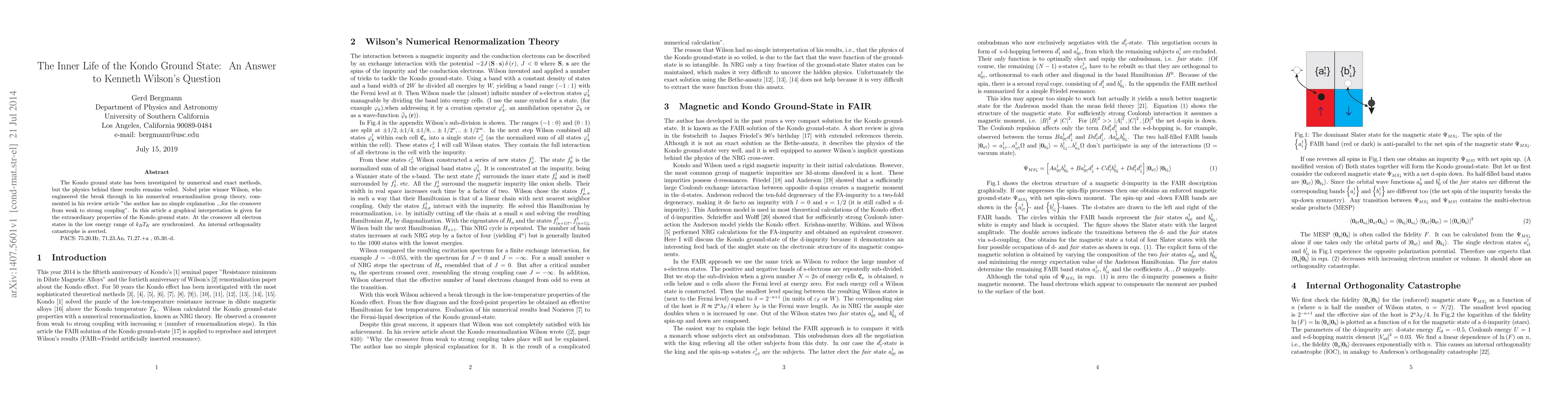 The Kondo ground state has been investigated by numerical and exact methods, but the physics behind these results remains veiled. Nobel prize winner Wilson, who engineered the break through in his numerical renormalization group theory, commented in his review article "the author has no simple explanation ...for the crossover from weak to strong coupling". In this article a graphical interpretation is given for the extraordinary properties of the Kondo ground state. At the crossover all electron states in the low energy range of k_{B}T_{K} are synchronized. An internal orthogonality catastrophe is averted.
