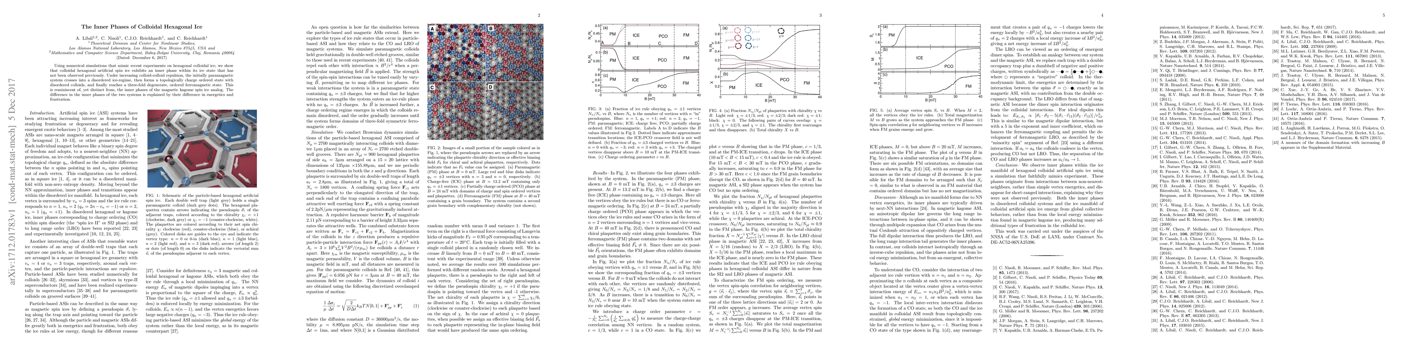 Using numerical simulations that mimic recent experiments on hexagonal colloidal ice, we show that colloidal hexagonal artificial spin ice exhibits an inner phase within its ice state that has not been observed previously. Under increasing colloid-colloid repulsion, the initially paramagnetic system crosses into a disordered ice-regime, then forms a topologically charge ordered state with disordered colloids, and finally reaches a three-fold degenerate, ordered ferromagnetic state. This is reminiscent of, yet distinct from, the inner phases of the magnetic kagome spin ice analog. The difference in the inner phases of the two systems is explained by their difference in energetics and frustration.
