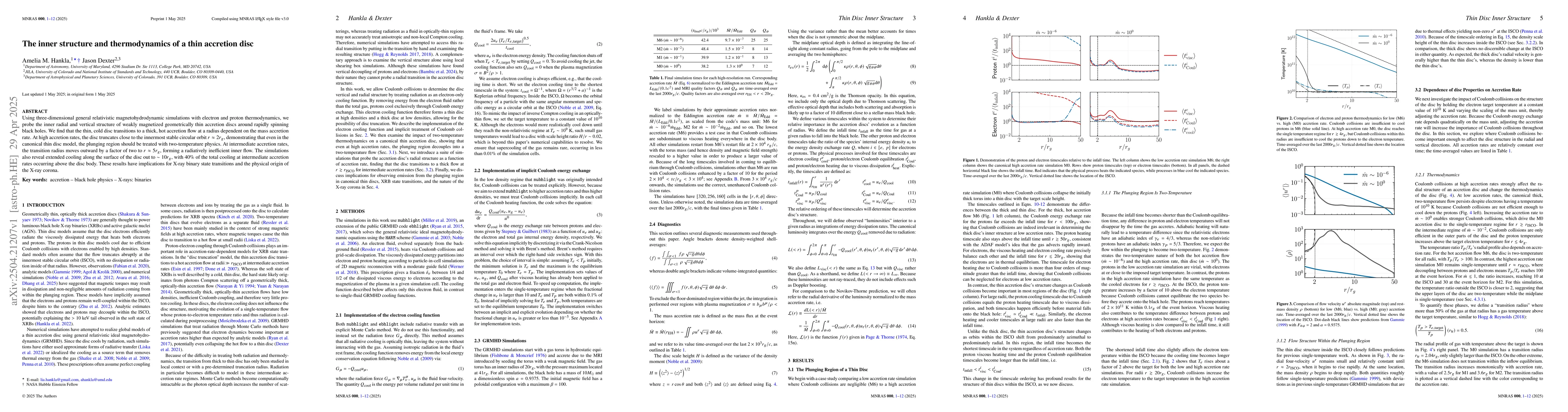 The research presents detailed three-dimensional relativistic MHD simulations incorporating electron and proton thermodynamics to analyze the inner structure and cooling mechanisms of accretion discs.