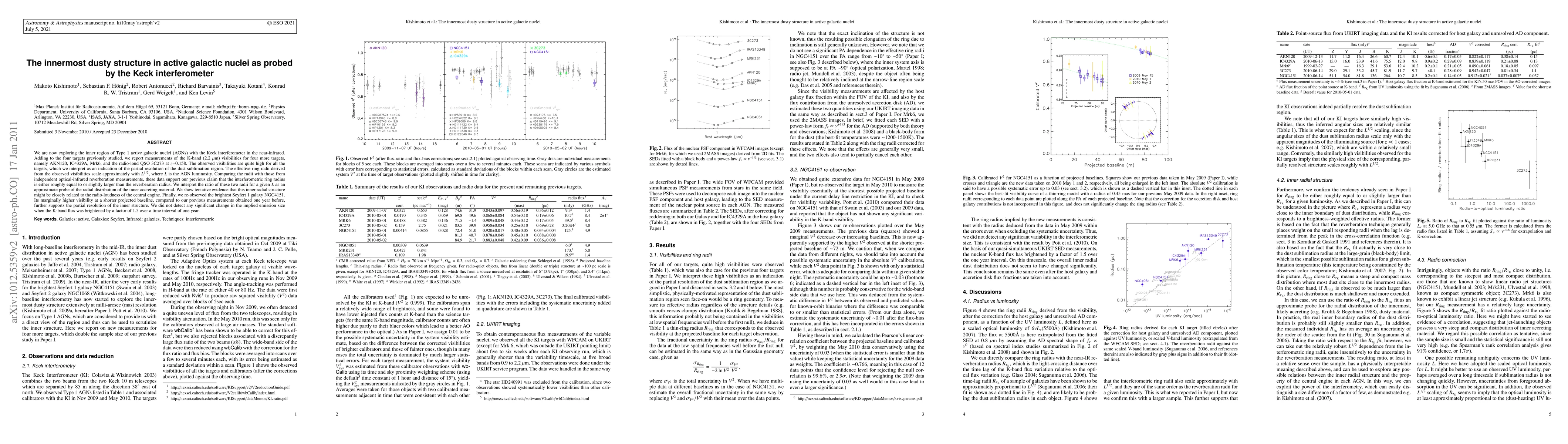 We are now exploring the inner region of Type 1 active galactic nuclei (AGNs) with the Keck interferometer in the near-infrared. Adding to the four targets previously studied, we report measurements of the K-band (2.2 um) visibilities for four more targets, namely AKN120, IC4329A, Mrk6, and the radio-loud QSO 3C273 at z=0.158. The observed visibilities are quite high for all the targets, which we interpret as an indication of the partial resolution of the dust sublimation region. The effective ring radii derived from the observed visibilities scale approximately with L^1/2, where L is the AGN luminosity. Comparing the radii with those from independent optical-infrared reverberation measurements, these data support our previous claim that the interferometric ring radius is either roughly equal to or slightly larger than the reverberation radius. We interpret the ratio of these two radii for a given L as an approximate probe of the radial distribution of the inner accreting material. We show tentative evidence that this inner radial structure might be closely related to the radio-loudness of the central engine. Finally, we re-observed the brightest Seyfert 1 galaxy NGC4151. Its marginally higher visibility at a shorter projected baseline, compared to our previous measurements obtained one year before, further supports the partial resolution of the inner structure. We did not detect any significant change in the implied emission size when the K-band flux was brightened by a factor of 1.5 over a time interval of one year.