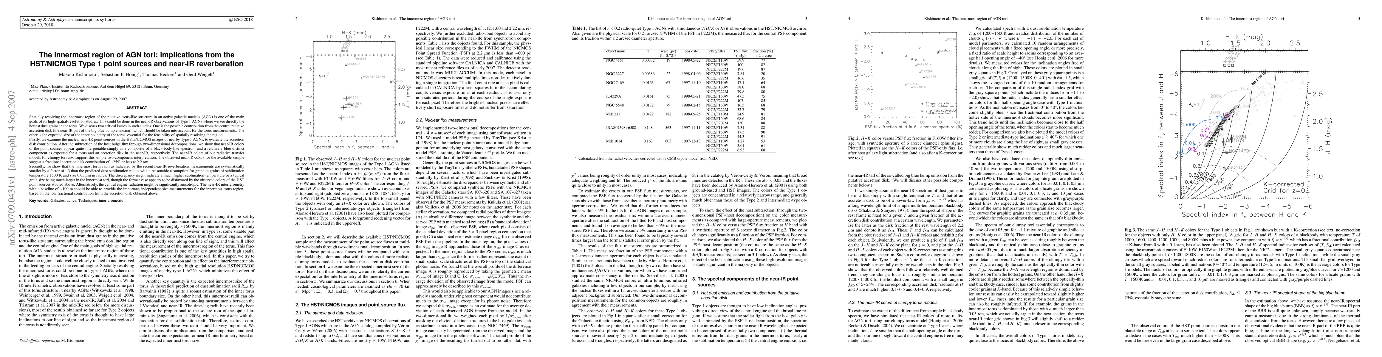Spatially resolving the innermost torus in AGN is one of the main goals of its high-spatial-resolution studies. This could be done in the near-IR observations of Type 1 AGNs where we see directly the hottest dust grains in the torus. We discuss two critical issues in such studies. Firstly, we examine the nuclear point sources in the HST/NICMOS images of nearby Type 1 AGNs, to evaluate the possible contribution from the central putative accretion disk. After a careful subtraction of host bulge flux, we show that near-IR colors of the point sources appear quite interpretable simply as a composite of a black-body-like spectrum and a relatively blue distinct component as expected for a torus and an accretion disk, respectively. Our radiative transfer models for clumpy tori also support this simple two-component interpretation. The observed near-IR colors suggest a fractional accretion disk contribution of ~25% or less at 2.2 micron. Secondly, we show that the innermost torus radii as indicated by the recent near-IR reverberation measurements are systematically smaller by a factor of ~3 than the predicted dust sublimation radius with a reasonable assumption for graphite grains of sublimation temperature 1500 K and size 0.05 micron in radius. The discrepancy might indicate a much higher sublimation temperature or a typical grain size being much larger in the innermost tori, though the former case appears to be disfavored by the observed colors of the HST point sources studied above. The near-IR interferometry with a baseline of ~100 m should be able to provide the important, independent size measurements, based on the low accretion disk contribution obtained above.