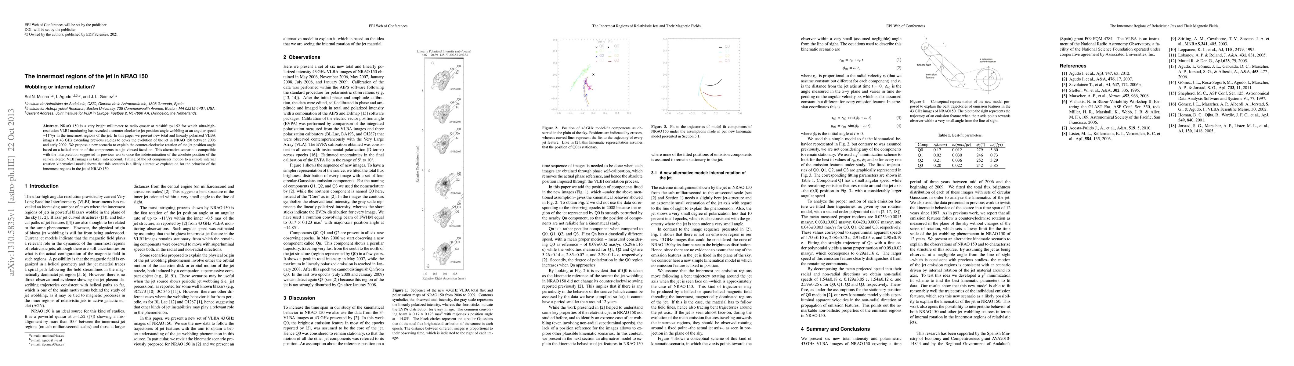 This paper investigates the inner jet dynamics of NRAO 150, revealing a counter-clockwise wobbling through ultra-high-resolution VLBI monitoring. It proposes a helical motion model as an alternative to the internal rotation interpretation, suggesting this scenario is a plausible explanation for the observed jet behavior.