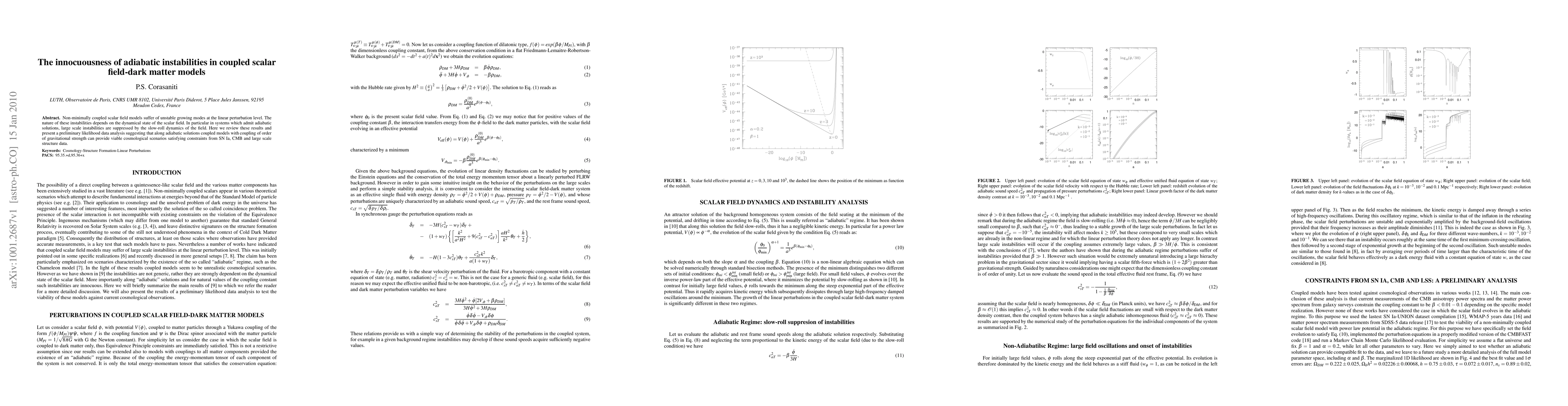 This paper reviews how adiabatic instabilities in non-minimally coupled scalar field models are suppressed by slow-roll dynamics, and suggests that such models with gravitational-strength coupling can still offer viable cosmological scenarios consistent with observational data from supernovae, CMB, and large scale structures.
