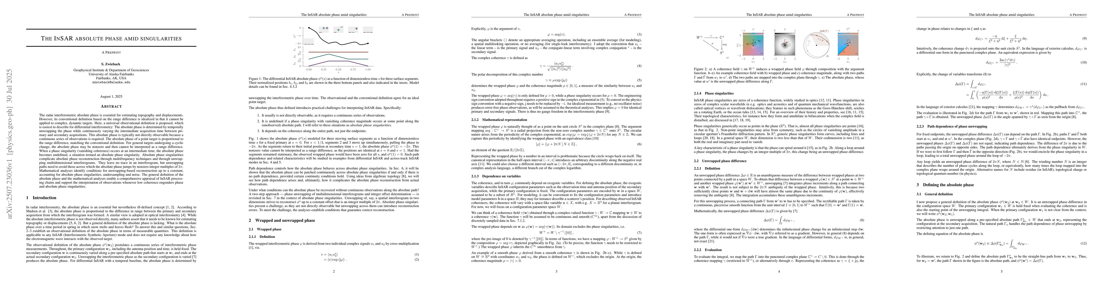 The radar interferometric absolute phase is essential for estimating topography and displacements. However, its conventional definition based on the range difference is idealized in that it cannot be applied to complex, dynamic targets. Here, a universal observational definition is proposed, which is easiest to describe for differential interferometry: The absolute phase is determined by temporally unwrapping the phase while continuously varying the intermediate acquisition time between primary and secondary acquisitions. This absolute phase is typically not directly observable because a continuous series of observations is required. The absolute phase of a point target is proportional to the range difference, matching the conventional definition. For general targets undergoing a cyclic change, the absolute phase may be nonzero and then cannot be interpreted as a range difference. When a phase singularity (vanishing coherence) occurs at an intermediate time, the absolute phase becomes undefined, a situation termed an absolute phase singularity. Absolute phase singularities complicate absolute phase reconstruction through multifrequency techniques and through unwrapping multidimensional interferograms. They leave no trace in an interferogram, but unwrapping paths need to avoid those across which the absolute phase jumps by nonzero integer multiples of $2 \pi$. Mathematical analyses identify conditions for unwrapping-based reconstruction up to a constant, accounting for absolute phase singularities, undersampling and noise. The general definition of the absolute phase and the mathematical analyses enable a comprehensive appraisal of InSAR processing chains and support the interpretation of observations whenever low coherence engenders phase and absolute phase singularities.