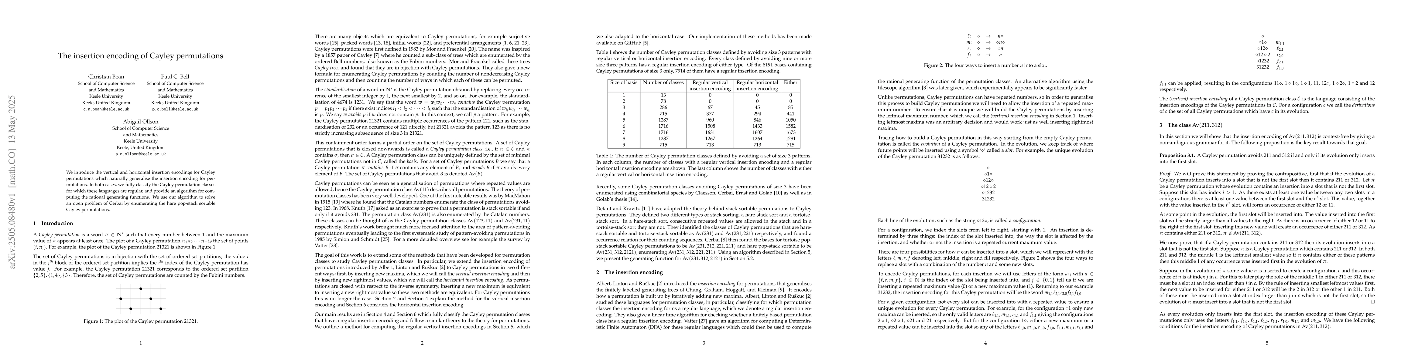 The paper introduces vertical and horizontal insertion encodings for Cayley permutations, generalizing the insertion encoding for permutations. It classifies Cayley permutation classes for which these languages are regular and provides an algorithm for computing rational generating functions.