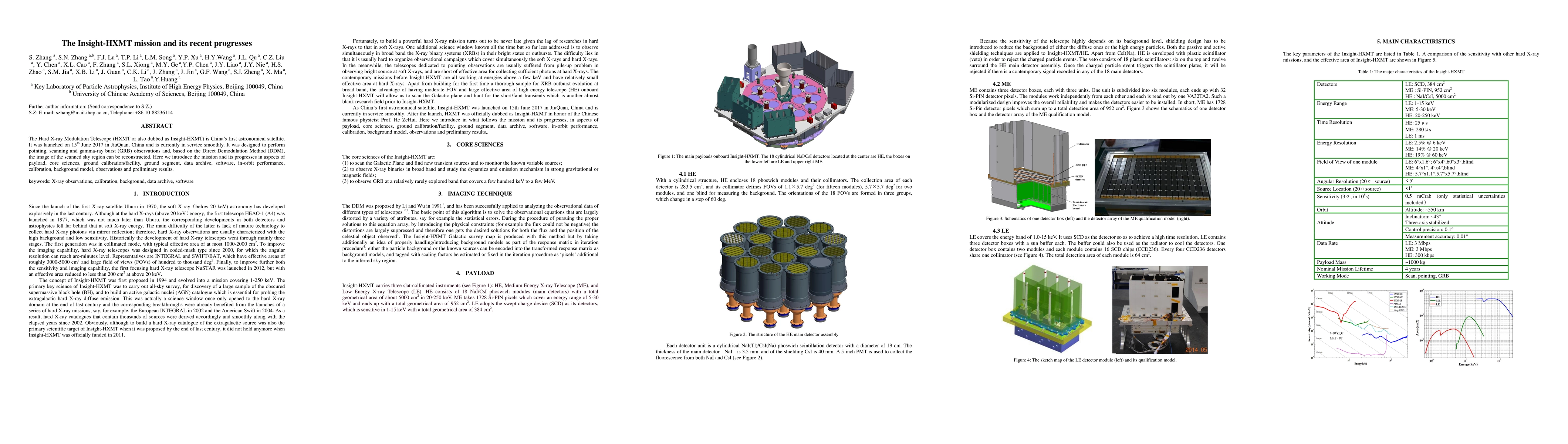 The Insight-HXMT mission, China's first astronomical satellite launched in June 2017, focuses on pointing, scanning, and GRB observations using the Direct Demodulation Method. This summary covers its payload, core sciences, and preliminary results, highlighting its in-orbit performance and calibration.