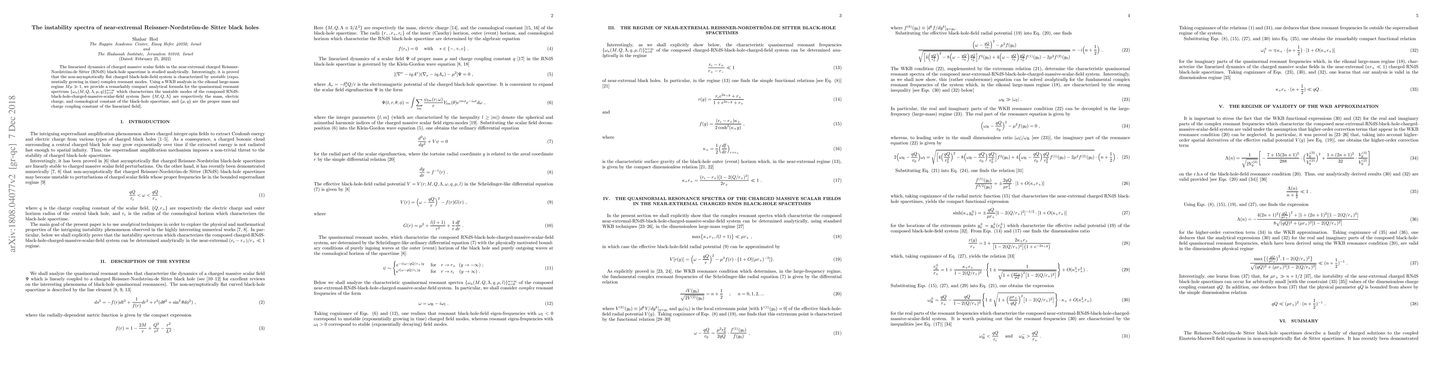 This paper analytically investigates the instability spectra of near-extremal Reissner-Nordström-de Sitter black holes, revealing complex resonant modes that grow exponentially. The study provides a compact analytical formula for the quasinormal resonant spectrum in the eikonal large-mass regime.