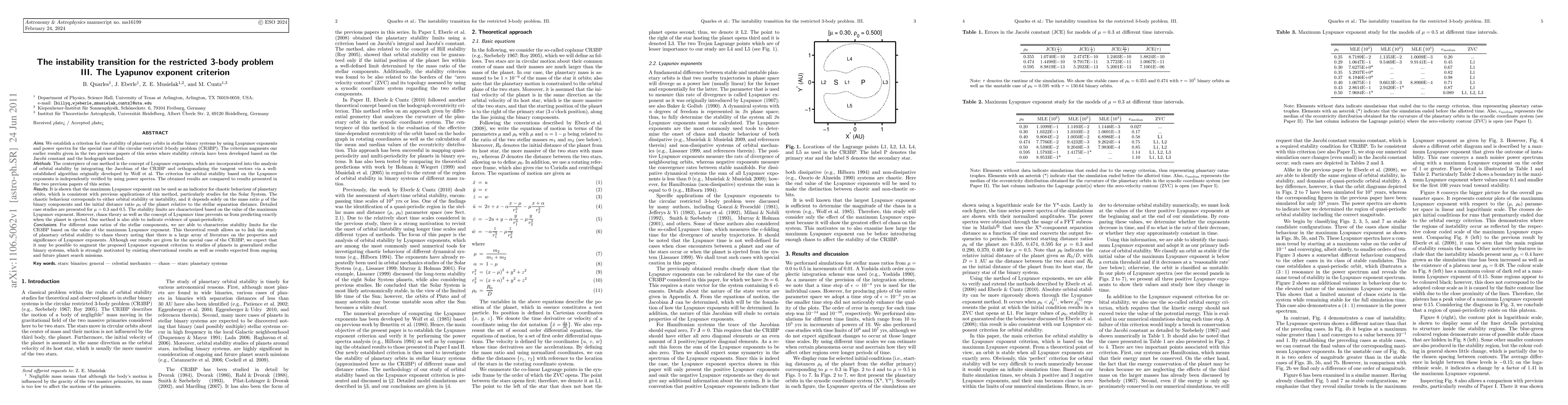 Researchers establish a criterion for planetary orbit stability in stellar binary systems using Lyapunov exponents and power spectra, providing insights into chaotic behavior and its connection to orbital stability.