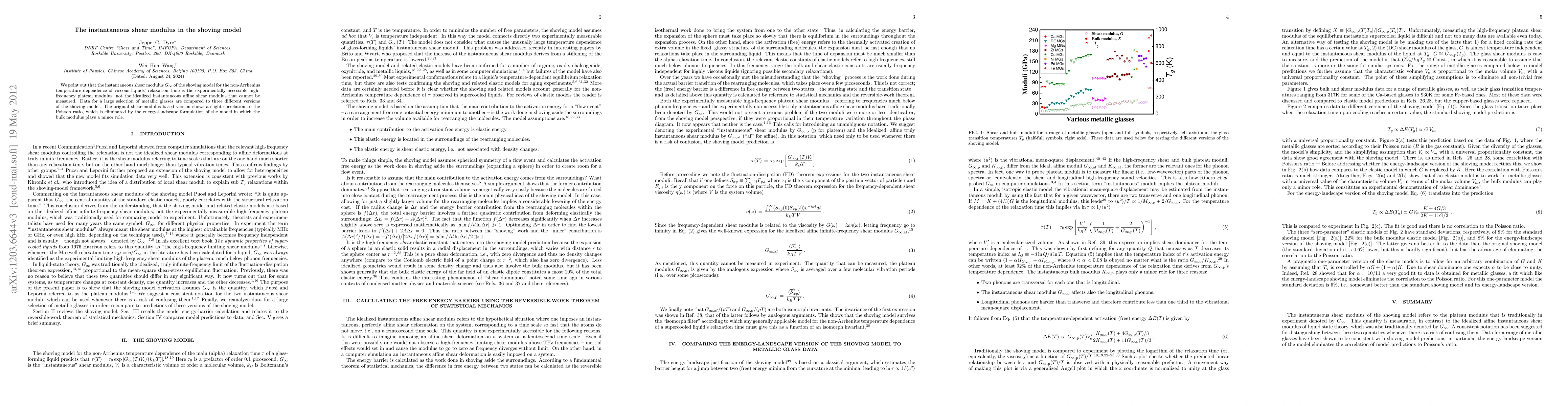 This paper argues that the experimentally measurable high-frequency plateau modulus represents the instantaneous shear modulus in the shoving model for viscous liquids, rather than the unmeasurable idealized instantaneous affine shear modulus. The study finds that the original shear-modulus version correlates weakly with the Poisson ratio, which is better explained by the energy-landscape model where the bulk modulus has a minor role.