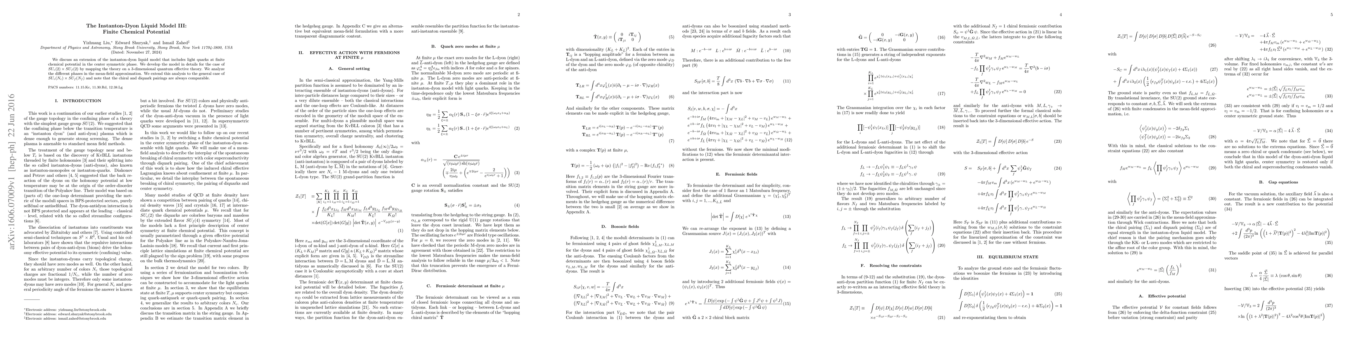 This paper extends the instanton-dyon liquid model to incorporate light quarks at finite chemical potential in the center symmetric phase, focusing on SU_c(2)×SU_f(2) and generalizing to SU_c(N_c)×SU_f(N_f). The study analyzes phases in the mean-field approximation, showing comparable chiral and diquark pairings.