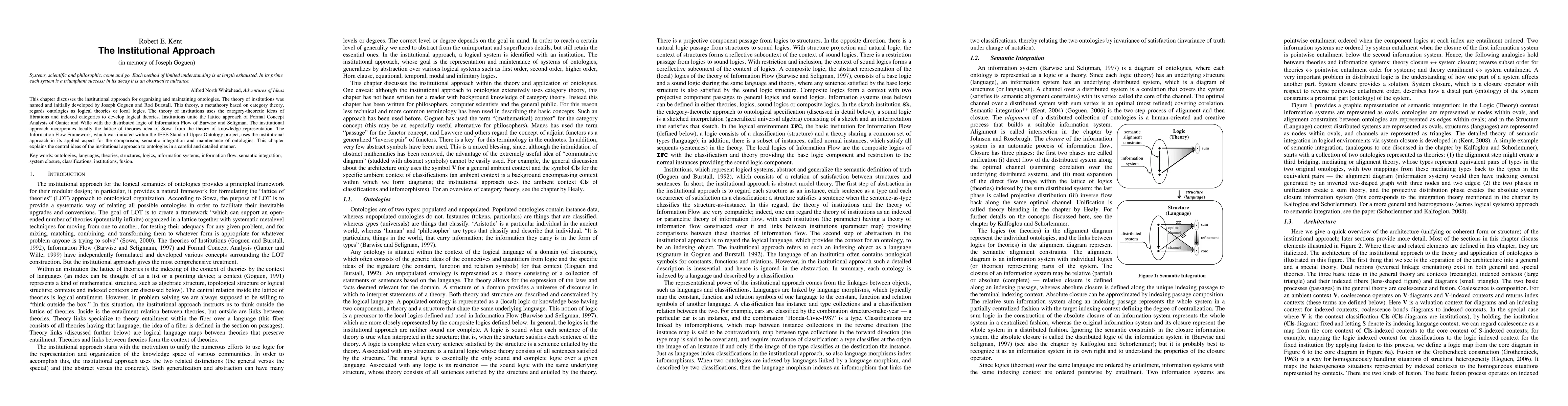 This paper explores the institutional approach for organizing and maintaining ontologies, developed by Joseph Goguen and Rod Burstall, using category theory to unite various logical theories and frameworks. The institutional approach facilitates the comparison, semantic integration, and maintenance of ontologies through the Information Flow Framework.