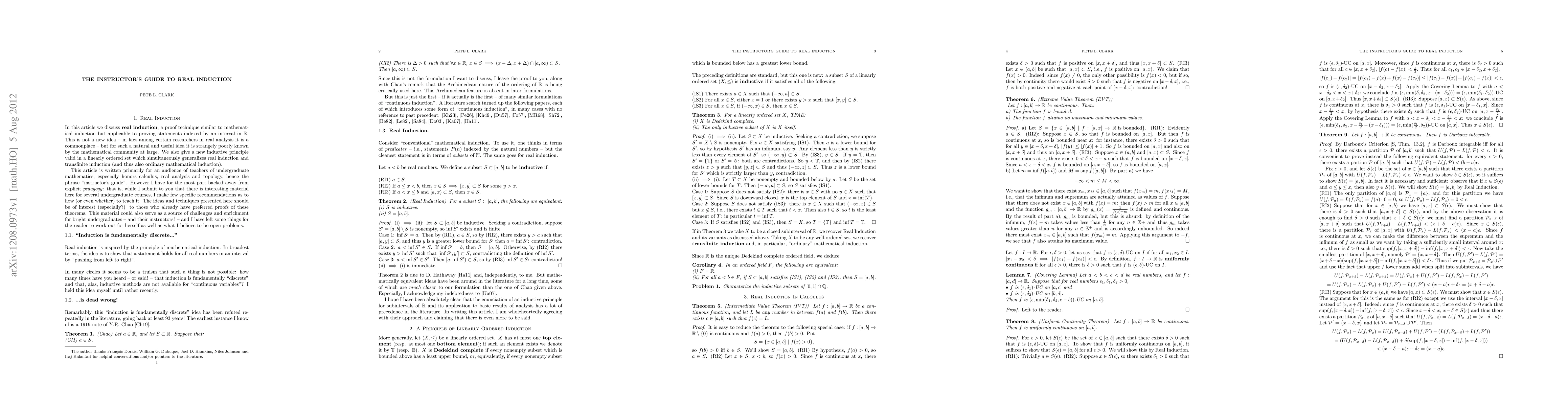 This paper introduces real induction, a proof technique that applies mathematical induction to statements indexed by intervals on the real line, allowing for streamlined proofs of basic results in calculus and analysis.