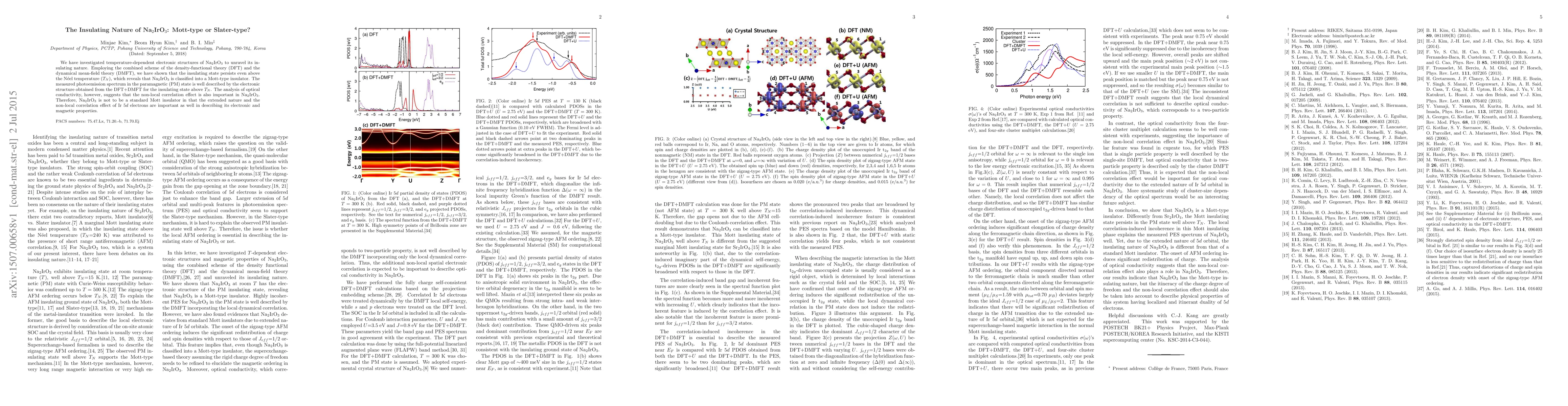We have investigated temperature-dependent electronic structures of Na2IrO3 to unravel its insulating nature. Employing the combined scheme of the density-functional theory (DFT) and the dynamical mean-field theory (DMFT), we have shown that the insulating state persists even above the Neel temperature (T_{N}), which reveals that Na2IrO3 is classified into a Mott-type insulator. The measured photoemission spectrum in the paramagnetic (PM) state is well described by the electronic structure obtained from the DFT+DMFT for the insulating state above T_{N}. The analysis of optical conductivity, however, suggests that the non-local correlation effect is also important in Na2IrO3. Therefore, Na2IrO3 is not to be a standard Mott insulator in that the extended nature and the non-local correlation effect of Ir 5d electrons are important as well in describing its electronic and magnetic properties.