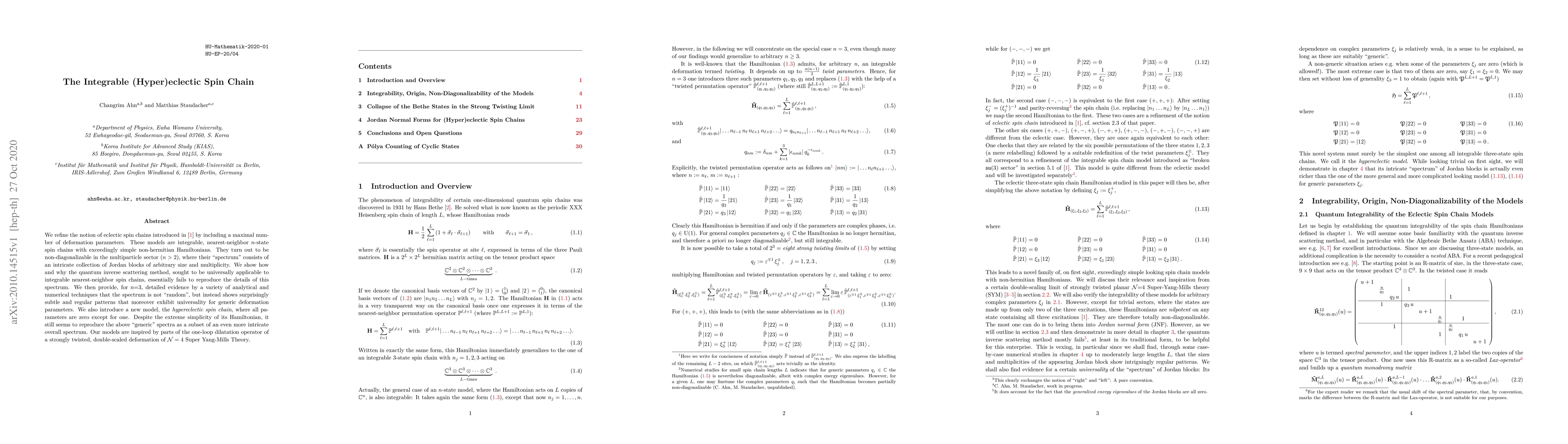 We refine the recently introduced notion of eclectic spin chains by including a maximal number of deformation parameters. These models are integrable, nearest-neighbor n-state spin chains with exceedingly simple non-hermitian Hamiltonians. They turn out to be non-diagonalizable in the multiparticle sector (n>2), where their "spectrum" consists of an intricate collection of Jordan blocks of arbitrary size and multiplicity. We show how and why the quantum inverse scattering method, sought to be universally applicable to integrable nearest-neighbor spin chains, essentially fails to reproduce the details of this spectrum. We then provide, for n=3, detailed evidence by a variety of analytical and numerical techniques that the spectrum is not "random", but instead shows surprisingly subtle and regular patterns that moreover exhibit universality for generic deformation parameters. We also introduce a new model, the hypereclectic spin chain, where all parameters are zero except for one. Despite the extreme simplicity of its Hamiltonian, it still seems to reproduce the above "generic" spectra as a subset of an even more intricate overall spectrum. Our models are inspired by parts of the one-loop dilatation operator of a strongly twisted, double-scaled deformation of N=4 Super Yang-Mills Theory.