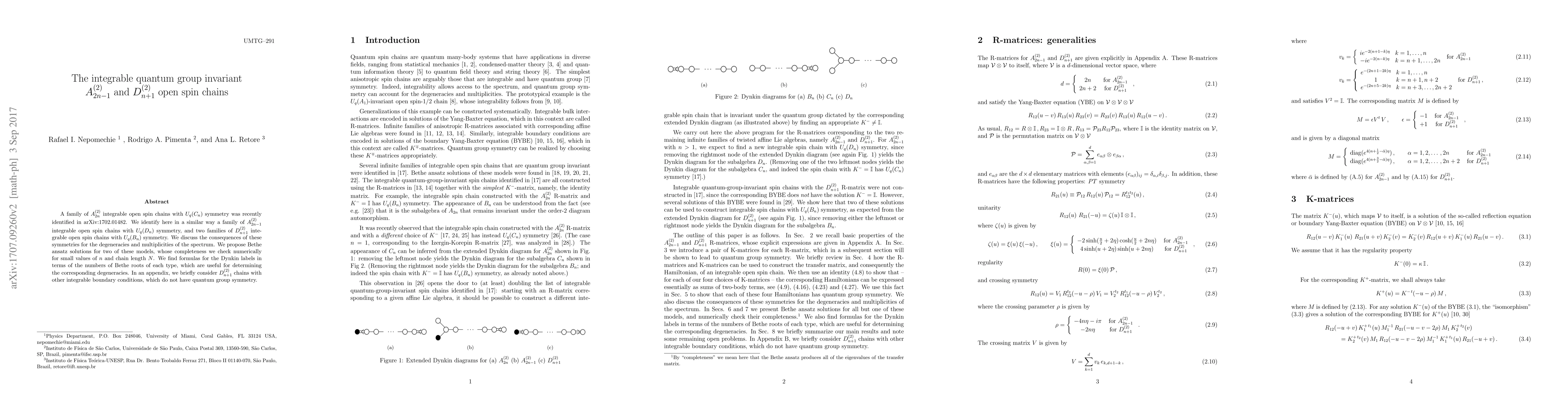 This paper introduces integrable open spin chains of type A_{2n-1}^(2) and D_{n+1}^(2) with U_q(D_n) and U_q(B_n) symmetries, respectively. It proposes Bethe ansatz solutions for these models and verifies their completeness numerically, offering formulas for degeneracies based on the numbers of Bethe roots.