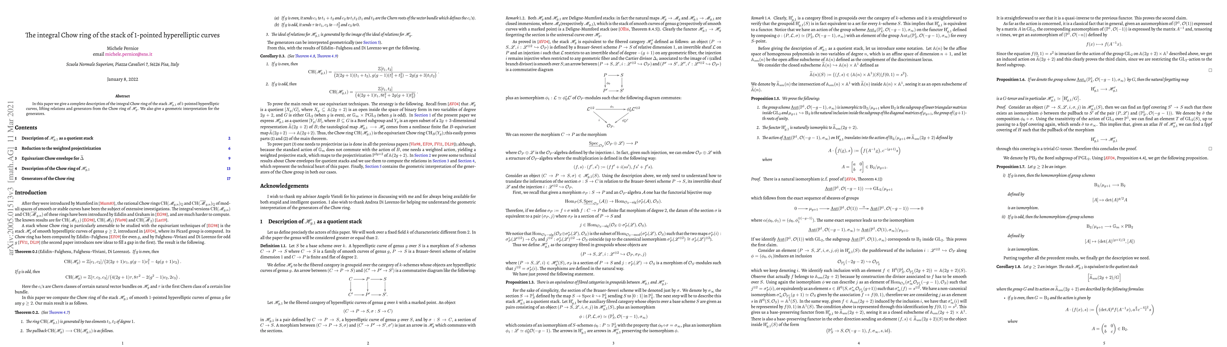 Summary: This paper provides a detailed description of the integral Chow ring of the stack $\mathscr{H}_{g,1}$ of 1-pointed hyperelliptic curves, establishing its generators and relations while offering a geometric interpretation for these elements.