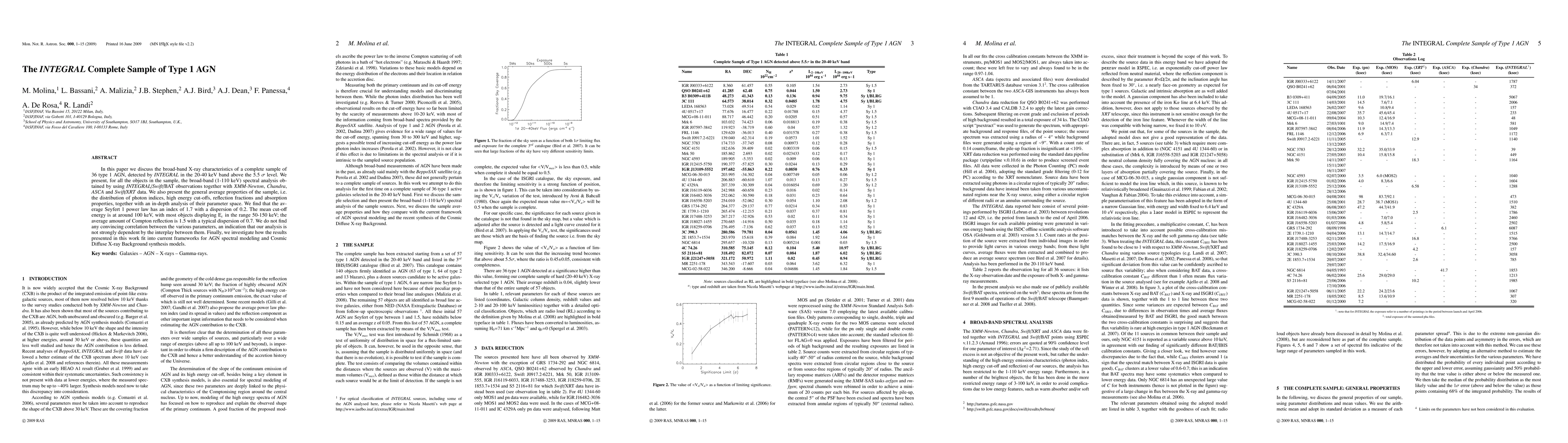 This paper analyzes the broad-band X-ray characteristics of a complete sample of 36 type 1 AGN detected by INTEGRAL, revealing average photon indices, high energy cut-offs, and Compton reflection fractions, with no significant correlations found among these parameters. The study fits these findings into existing AGN spectral models and Cosmic Diffuse X-ray Background synthesis models.