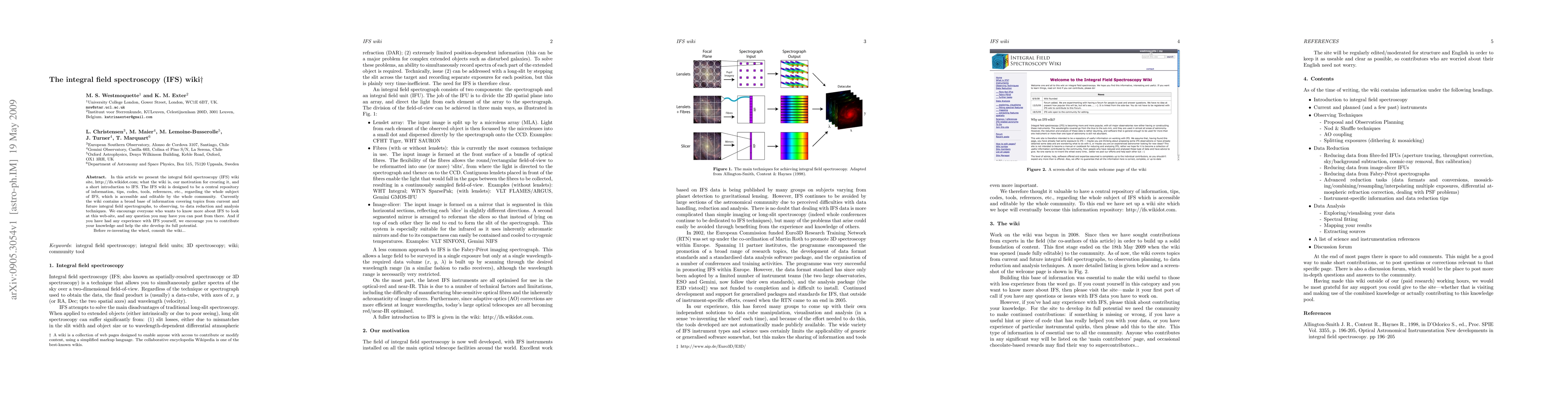 This paper introduces the integral field spectroscopy (IFS) wiki, a central repository of information on IFS that aims to provide accessible knowledge for the community. It encourages users to contribute their experience and expertise to enhance the site's potential.