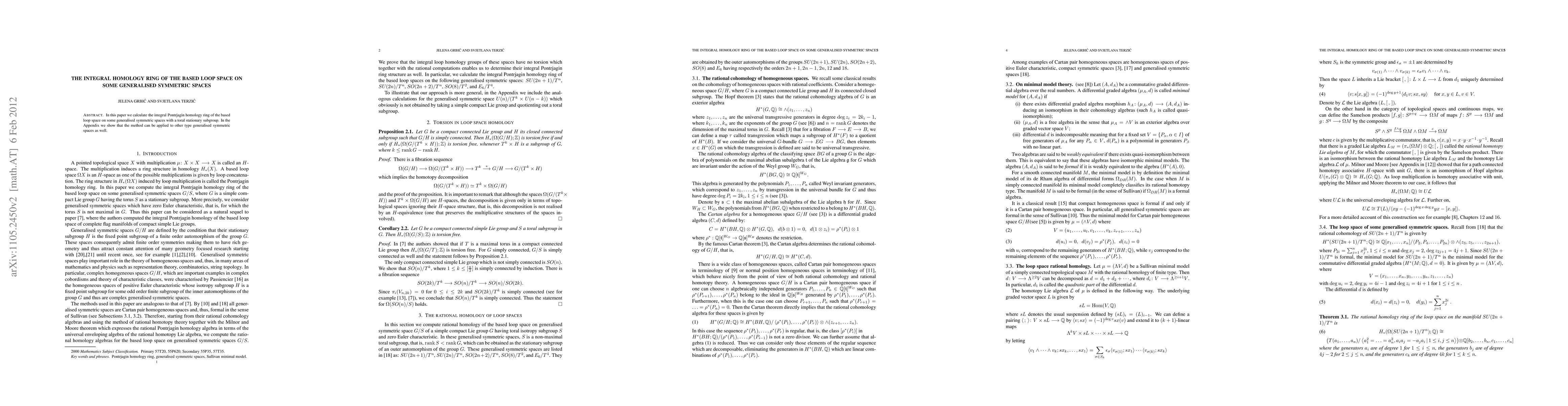 This paper calculates the integral Pontrjagin homology ring of the based loop space on certain generalised symmetric spaces with a toral stationary subgroup. An appendix demonstrates the applicability of the method to other types of generalised symmetric spaces.